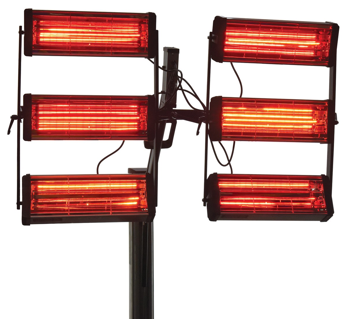 An infrared heater provides beneficial warmth to a variety of industrial areas. A simple to use control panel allows the function and heat settings to be utilized in the best possible way for maximum efficiency. An adjustable heater arm gives the user the ability to maneuver the heating elements into a position that best fits the type of surface that is being heated. Unit includes casters to easily maneuver the unit to and around the work area. A robust structural construction endures work place conditions that are continually changing.