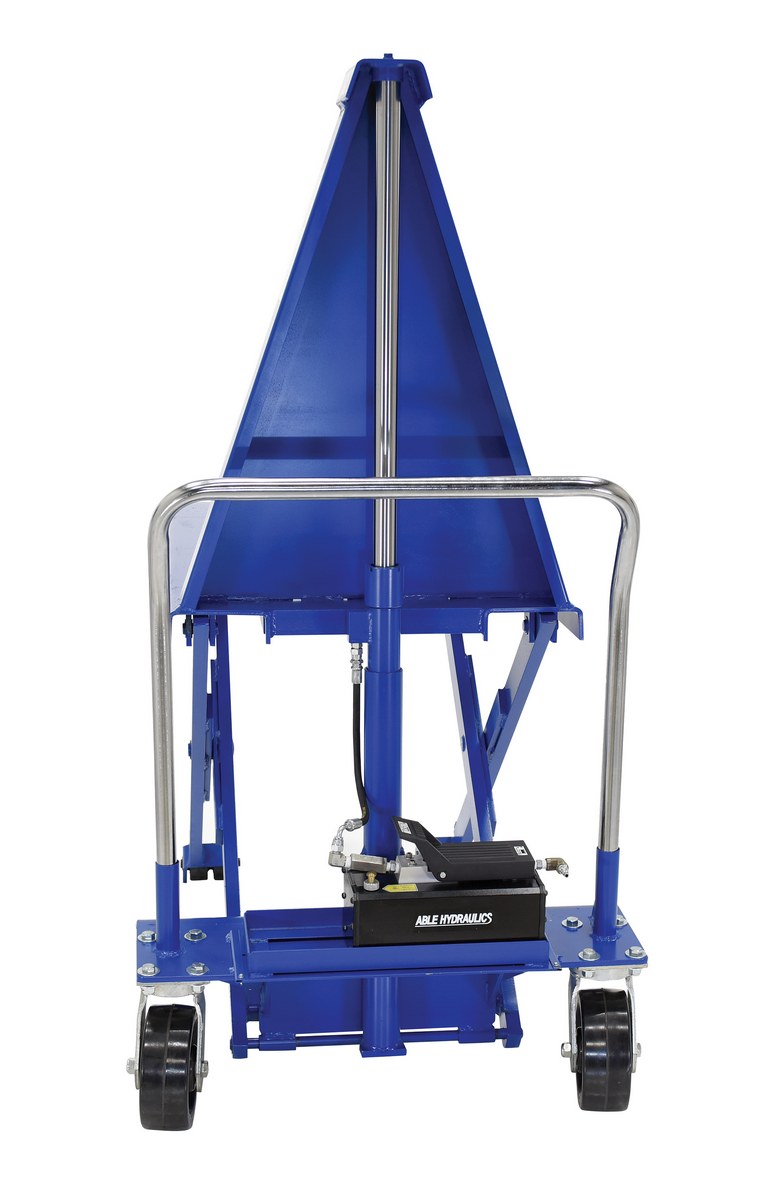 Steel Air Reciprocating Powered High Lift Table 27 In. x 48 In. 2500 Lb. CapacityThe high rise lift truck increases employee ergonomics and machine efficiency and productivity. It reduces muscle fatigue and body injuries by bringing material closer to actual worker height.