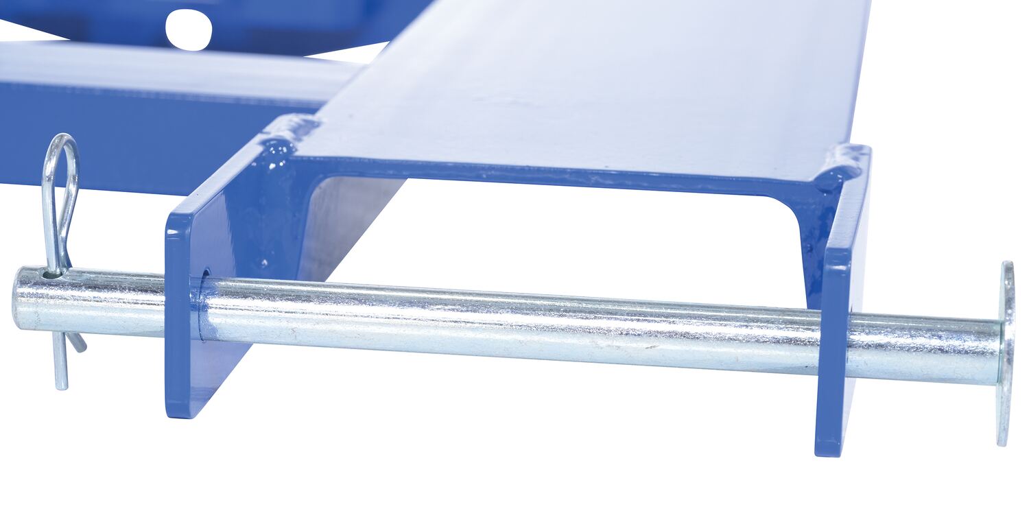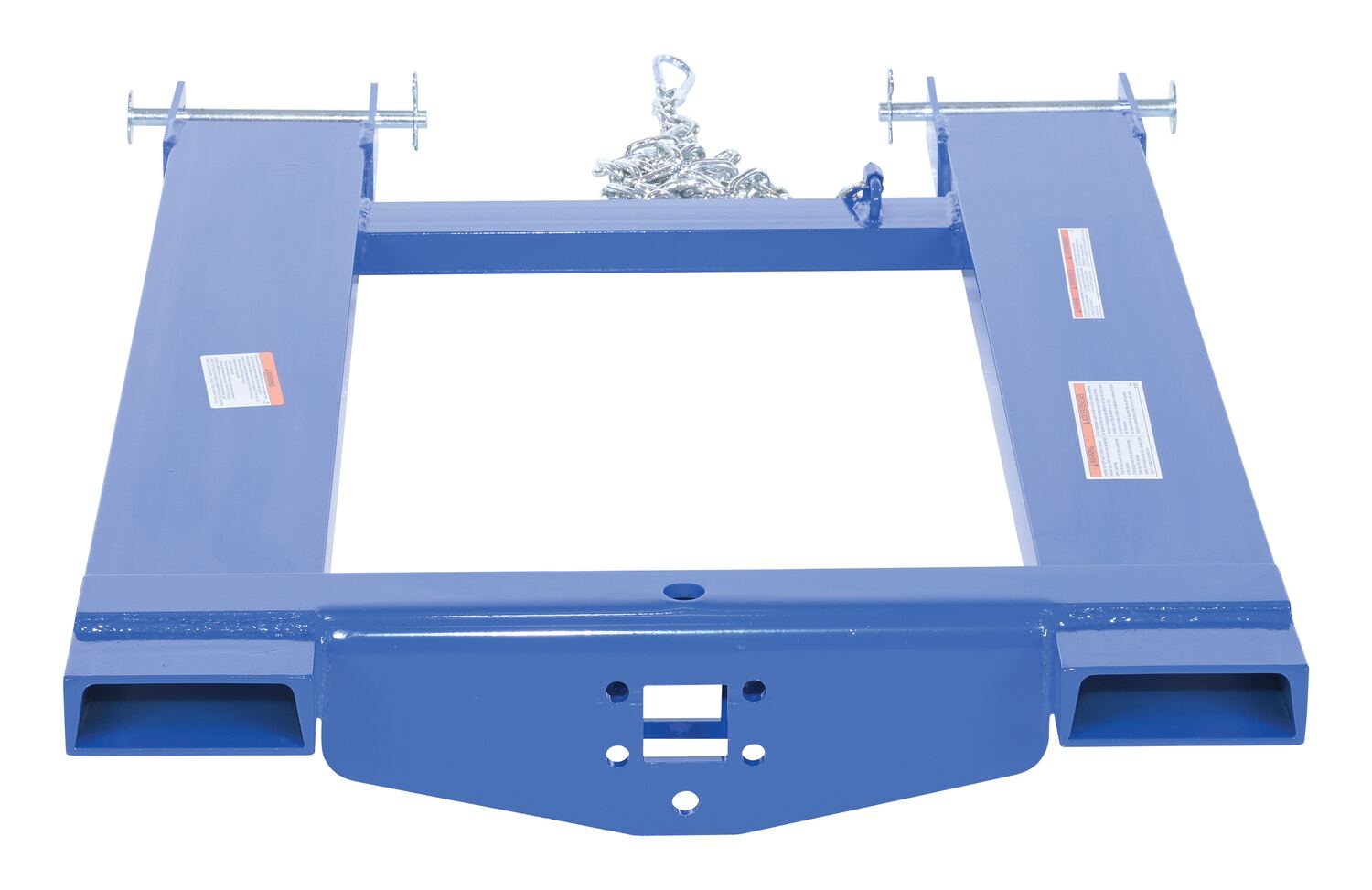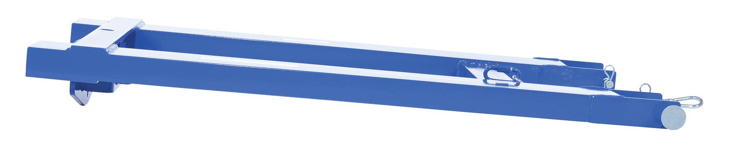Steel Fork Truck Hook Base 38 In. Length 4,000 Lb. Capacity BlueConvert your fork truck into a tow truck for moving trailers and other portable equipment using this Fork Truck base. Simple design slides onto forks and secures into place with pin style tine locks. Welded steel construction with powder coat blue finish.