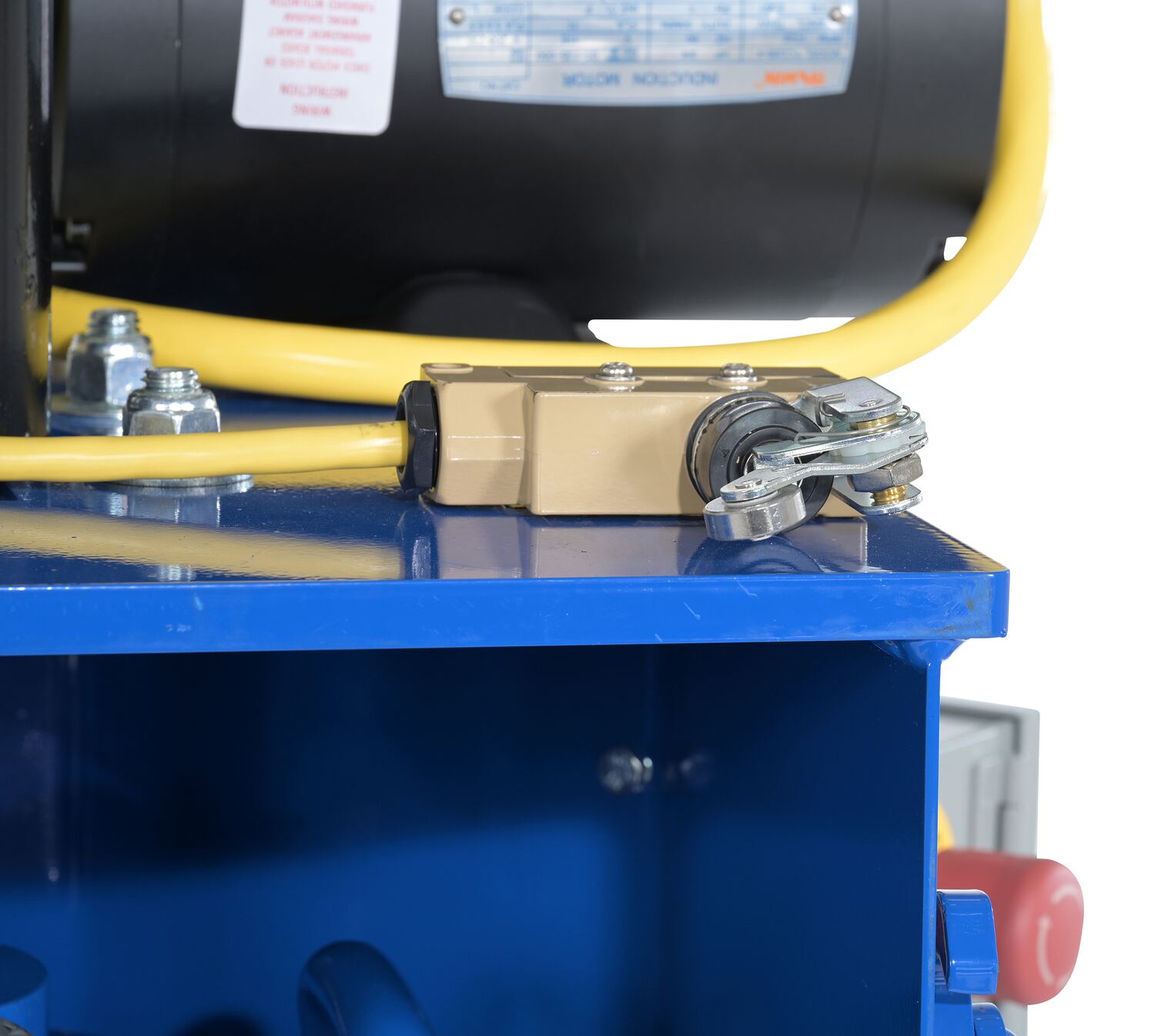 Crush five (5) gallon steel pails quickly and easily. Crushes a steel pail and resets automatically to crush another pail. Reduce storage space and disposal costs. Safety features include: pressure relief valve to prevent overload, door interlock system to prevent the motor from running if the door is unlatched, mushroom head emergency stop button. Other features include a hydraulic pump, removable legs for bench top mounting and single phase for plug in operation.