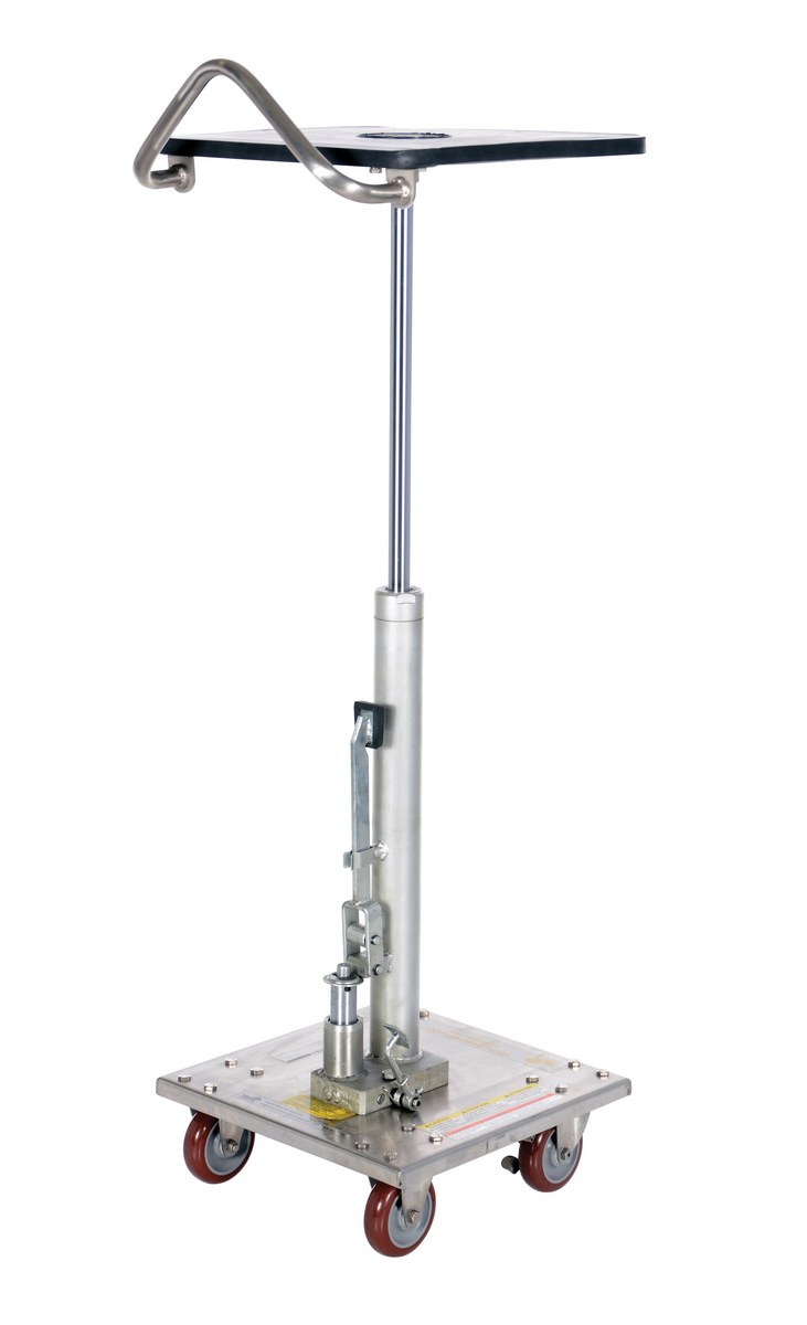 The Hydraulic post table is built for heavy-duty shop use. This post table is good for many material handling uses including: lifting dies and castings, moving machine parts, positioning welders work, leveling feed material for pump presses, conveyors and press brakes, and similar material handling jobs. The posts are telescoping to help stabilize and support loads during operation. Table includes four casters; two locking swivel with brakes and two rigid. The light duty-units feature a single-speed foot pump. Heavy-duty units feature a two-speed foot pump for maximum operator convenience. All foot pumps include a down speed control valve for safe platform lowering.