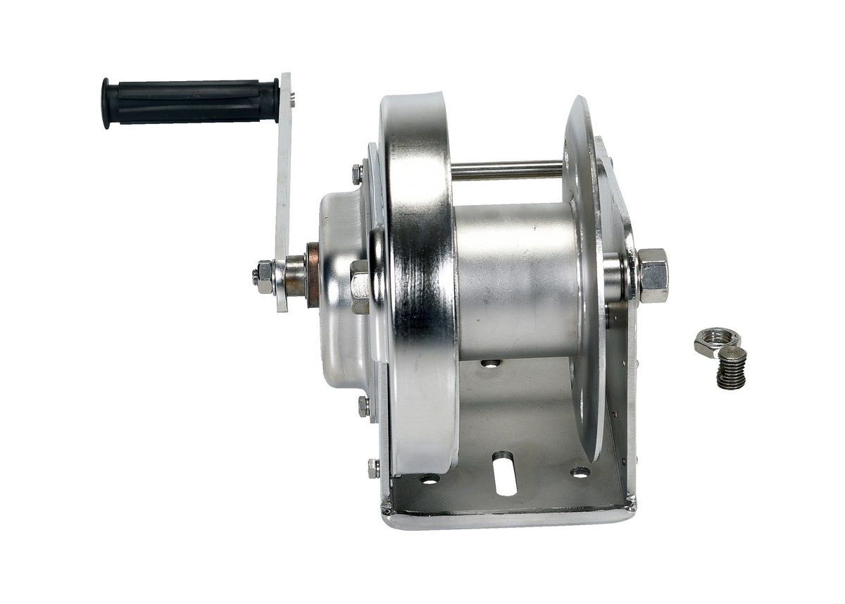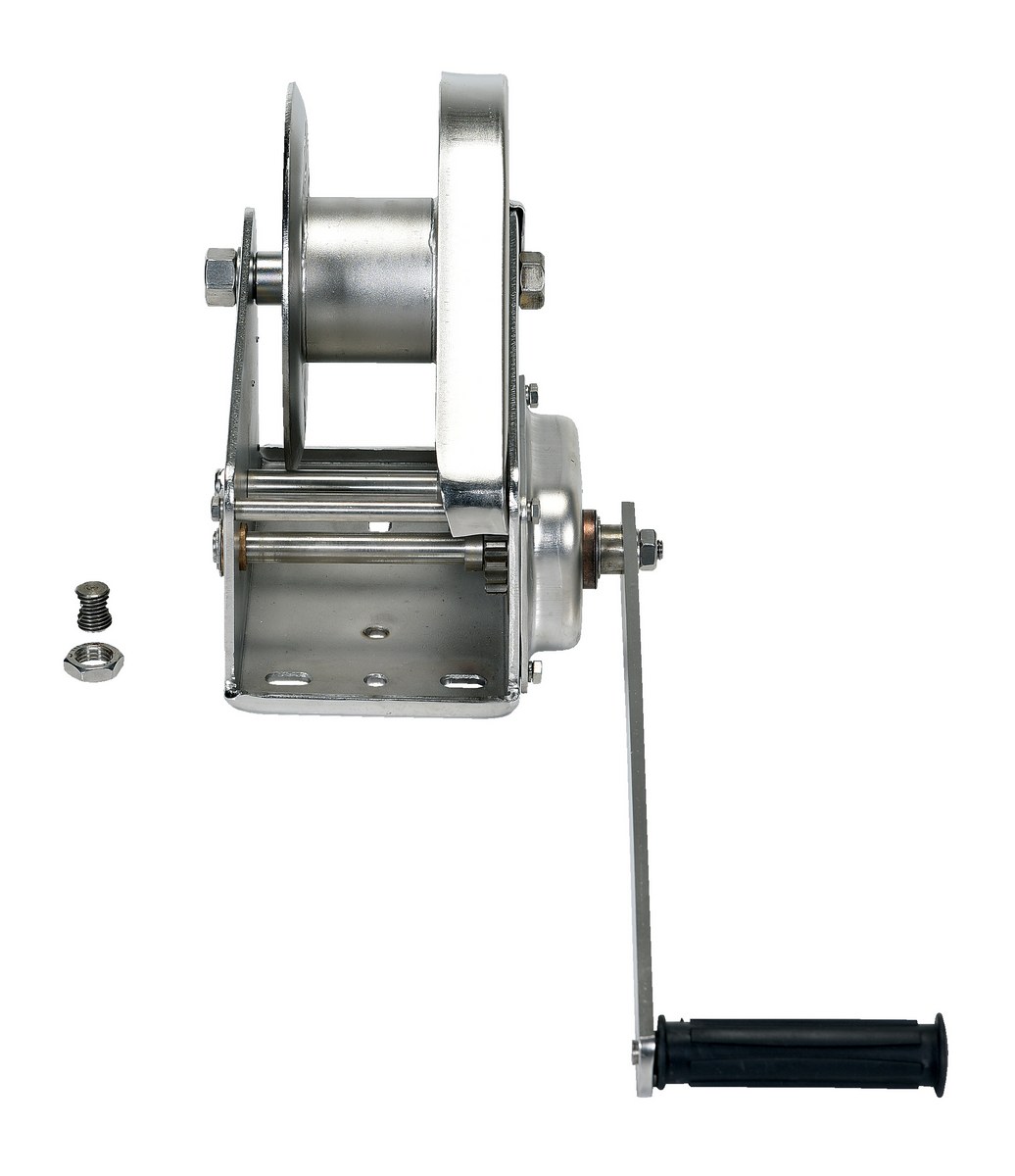 Stainless Steel Hand Winch 2600 Lb. Capacity SilverThe Stainless Steel hand winches are constructed of 304 stainless steel for corrosion resistance. Machine-cut spur gears ensure smooth accurate operation, while protective gear covers keep dirt out and help prevent worker injuries. Winches feature a drum clamp for easy attachment of wire rope (not included) and an automatic brake for positive load control during lifting and lowering operations.