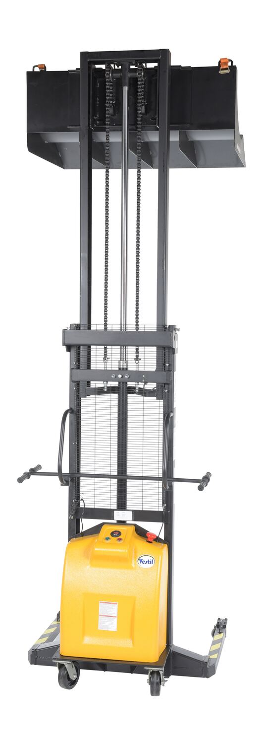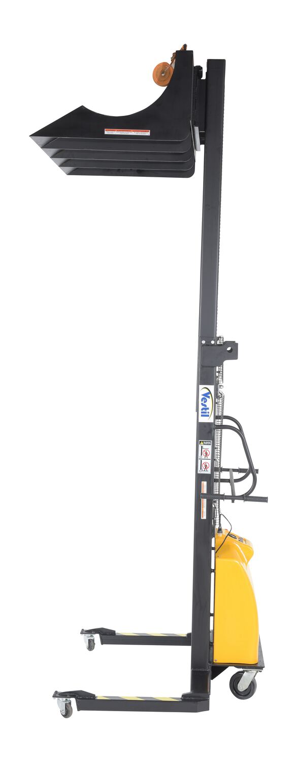 Steel 12 Volt DC Roll Lifter Transporter 15-3/4 In. Roll Diameter 600 Lb. Capacity Black/YellowAwkwardly sized, heavy rolls have always been difficult to lift and maneuver by hand. But, with the hydraulic roll lifter all that lifting is made easy. Simply place the roll on the wide concave deck and secure in place. Once stabilized, there is a limited amount of movement during transit. The unit is DC powered and works effortlessly with a capacity of 600lbs. driving handles are in a position that allows the user to maintain a proper posture. Powder coated finish for added toughness. Four poly casters roll smoothly across a variety of surfaces.
