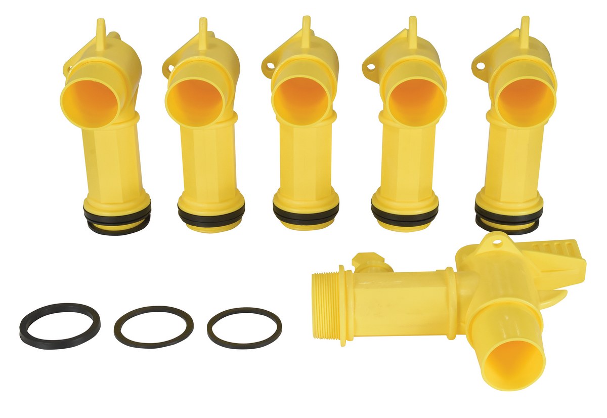 Polyethylene Bung Jumbo Manual Drum Faucet 2 In. 6 Pack YellowQuickly and easily dispense drum contents with this manual drum faucet. The jumbo drum faucet is ideal for dispensing viscous, non-corrosive flammables such as adhesives, paint, heavy oils, grease, and varnish. Padlock not included. Integral hook allows user to hang pail on faucet and comes with a non-adjustable nozzle. Includes port for addition of drum level gauge (sold separately) and a variety of gaskets to fit different kinds of drums.