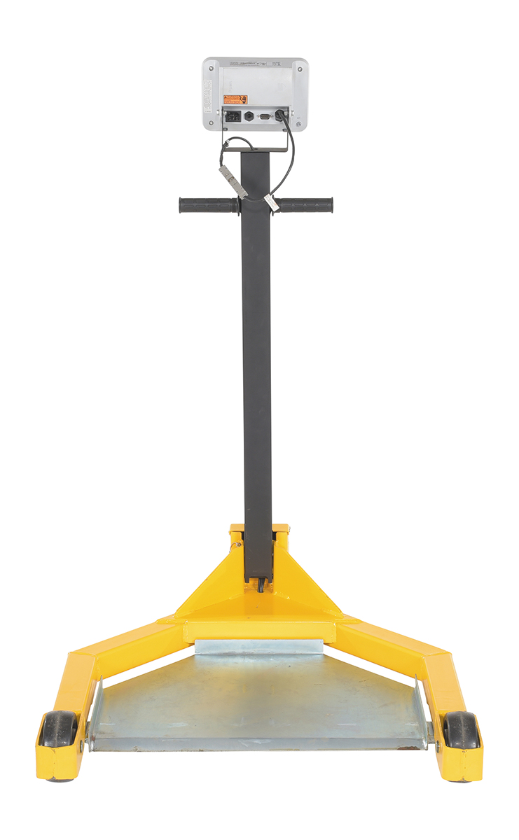Steel Low Profile Drum Dolly with Scale 38-1/2 In. x 31-1/2 In. x 49-1/4 In. 800 Lb. Capacity Black / YellowWhy bother taking the time to weigh drums at a designated location when you can do it on the go. The low profile drum scale allows the user to weigh the drums while they are being transported. Simply maneuver the drum onto the platform and a read-out of the weight will appear on the screen located near the handle of the dolly. Powder coated black and yellow for increased toughness during daily use. Poly casters are included for simple and a smooth rolling across a variety of surfaces. When not in use, the handle folds down onto the loading platform for a simple storage.