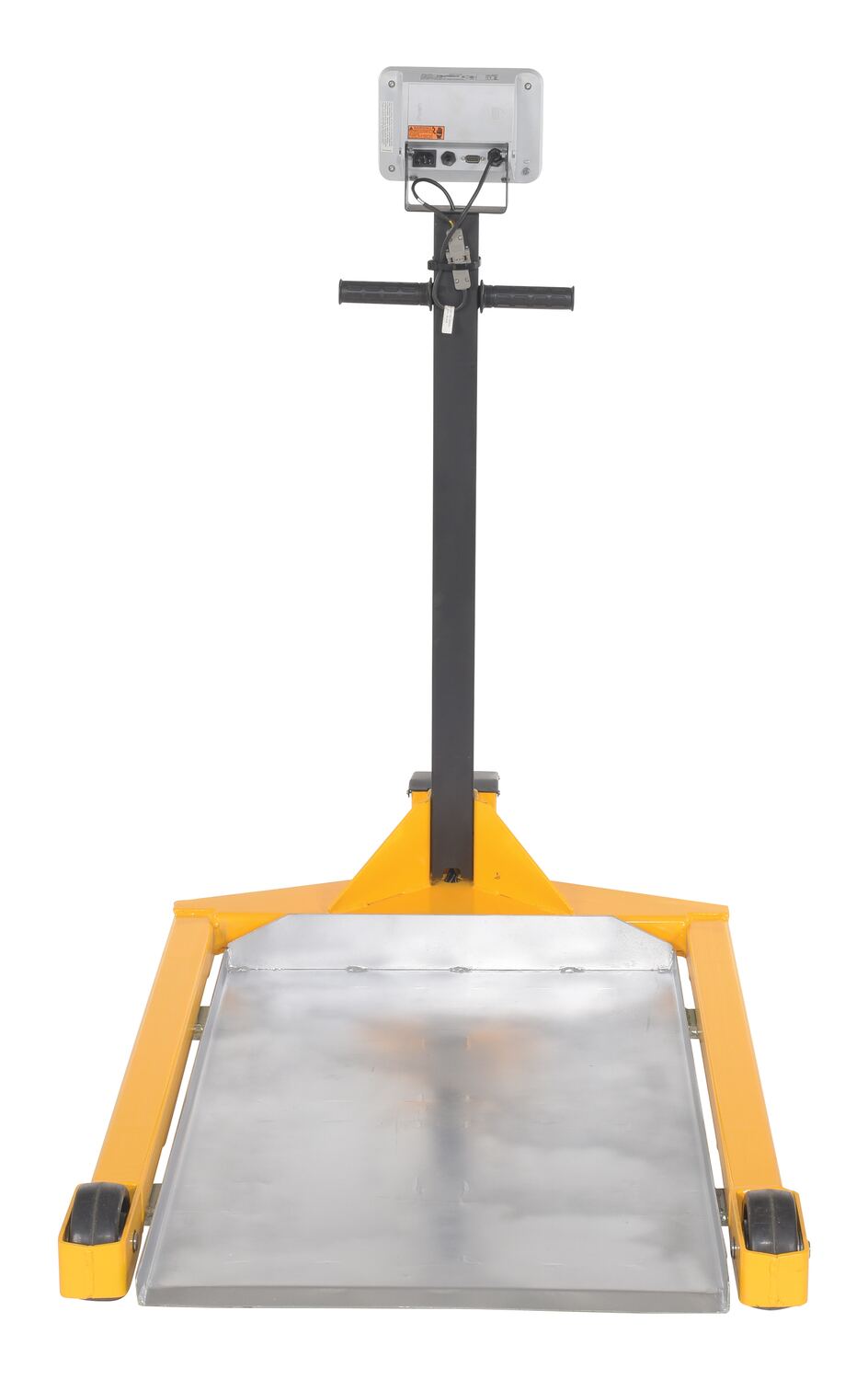 A low profile portable bin scale is an efficient addition to the packaging and shipping departments. With a steel construction and powder coat finish, this scale is durable throughout consistent daily use. A two handled push handle gives the user control over direction and positioning. Three nylon wheels, 2 rigid and 1 swivel, support the rolling of the unit across many surfaces.