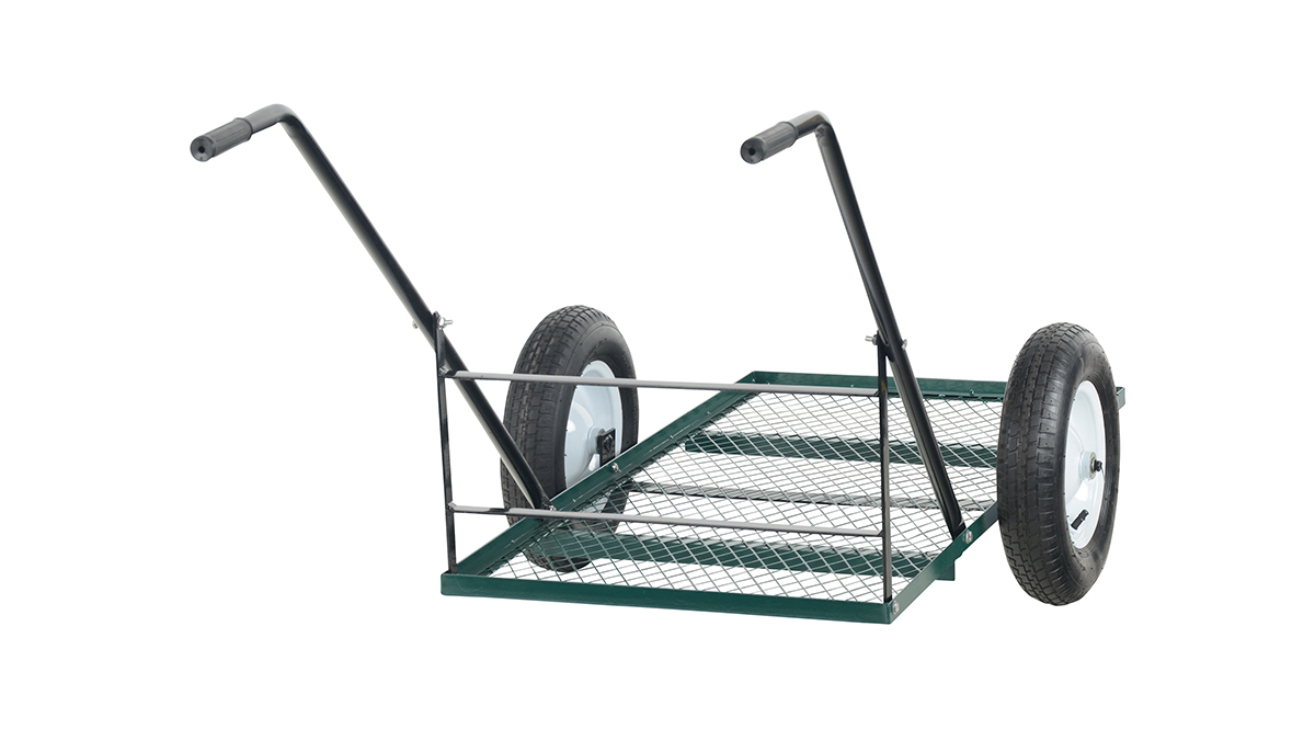 Transport plants, flowers, trees, shrubs, rocks, and similar materials or parts with this landscape, nursery & agriculture cart. The cart is rugged and easy to maneuver with their large pneumatic tires. This cart has mesh sides and bottoms to allow dirt, small rocks, and water to drain through.