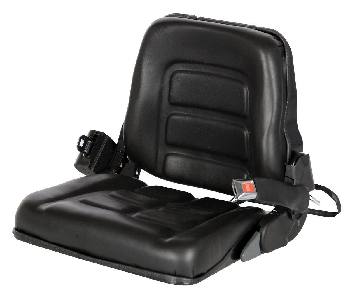 The Fork Truck seat has an ergonomic and comfortable seat design to help provide optimum body support for individual operators. Replace worn or broken fork truck seats with our easy to install universal mounting design. Standard features include: ergonomic seat design, vinyl material, low profile design, safety seat switch, seat back angle adjustment, and retractable safety belt.