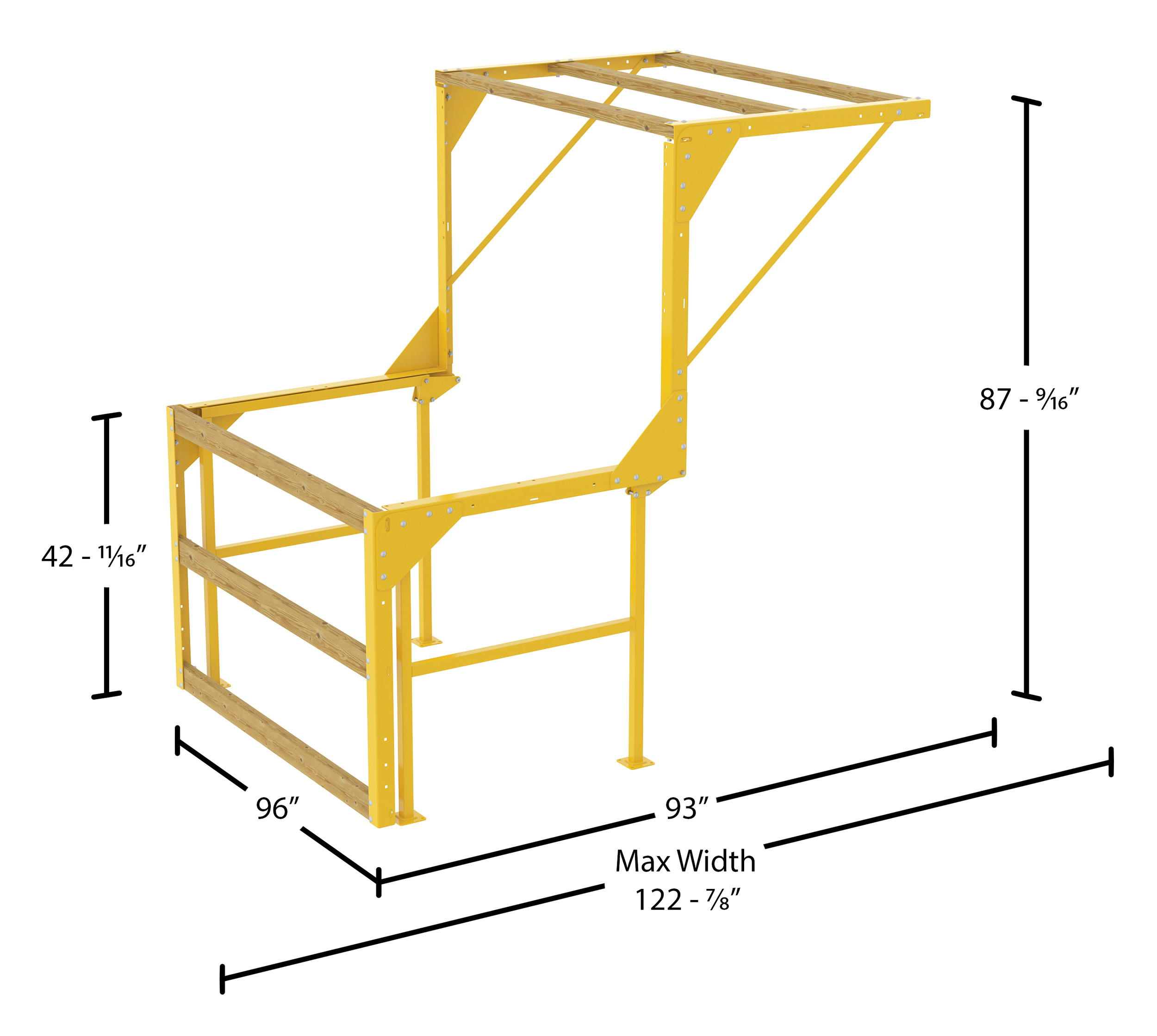 Steel Mezzanine Safety Gate Knockdown 87-3/16 In x 96 In x 87-9/16 In YellowThis mezzanine safety gate provides an OSHA required 42" high handrail. To accommodate the load height when utilizing a standard 48"W x 48"D pallet load positioning within the gate is critical. For greatest amount of clearance and item placement flexibility, shorter loads are recommended. Gate design is balanced to allow for easy operation without use of springs. Construction is welded steel with a baked-in powder-coated finish for increased toughness. Ships knockdown to the customer. Wooden cross rails are not included and must be supplied by the customer.
