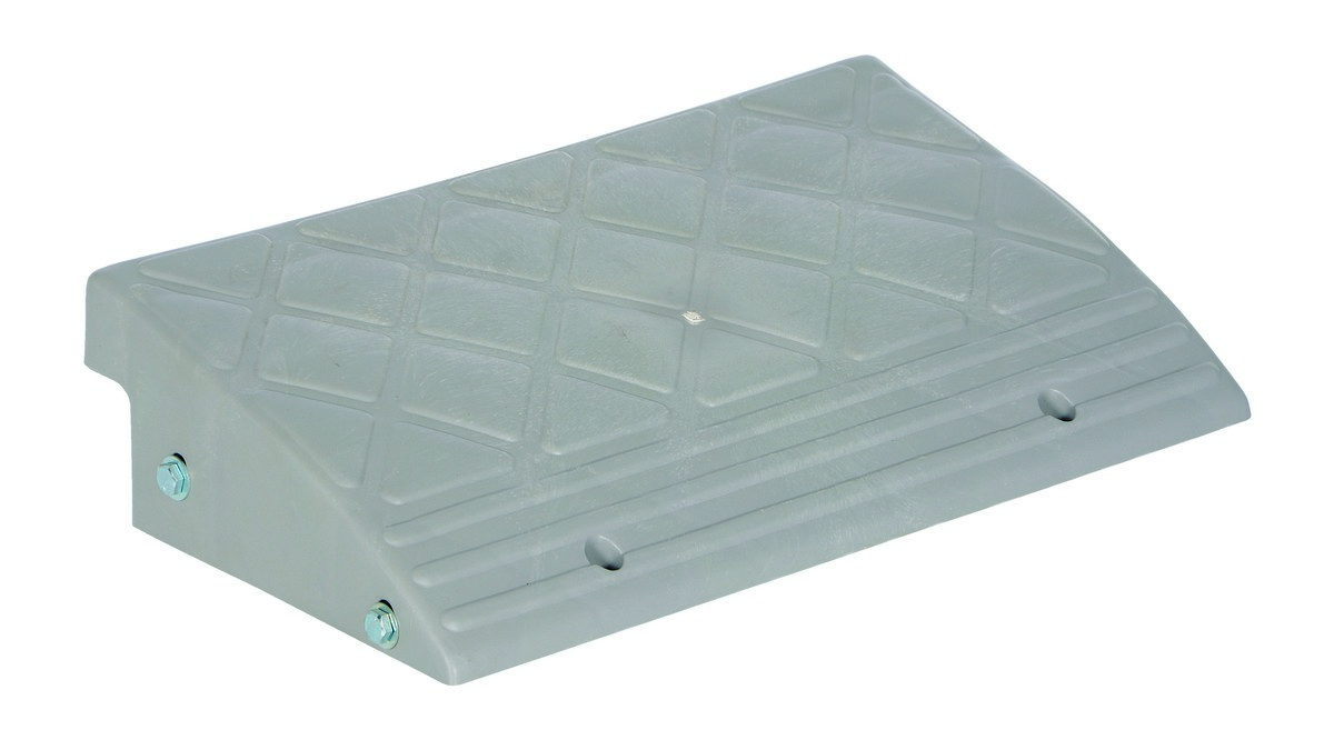 Plastic Multi Purpose Ramp 13-1/4 In. x 23-1/4 In. x 5-1/2 In. 5000 Lb. Capacity GrayThe multi-purpose ramp is a high impact ramp that is perfect for a variety of work environments; postal routes, schools, hospitals, warehouses and delivery routes. This ramp makes it simple to move loads onto a curb or over hoses and cables. The textured non-skid surface allows for sure footing on the incline and decline. The lightweight and completely portable unit handles hand trucks and other wheeled equipment with ease.