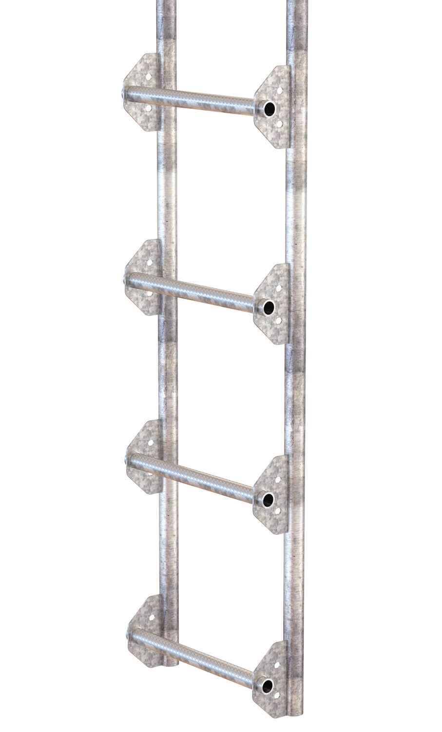 Galvanized Tank Access Ladder 12 Ft. 300 Lb. Capacity SilverGetting in and out of large tanks or vats is dangerous work; let that danger be eased with a tank access ladder. With rounded top handles the ladder strongly grasps the ledge of each tank, providing a stable entry and exit. And don’t worry about the distance between rungs being too short, these rungs are spaced perfectly making each climb simple and safe.