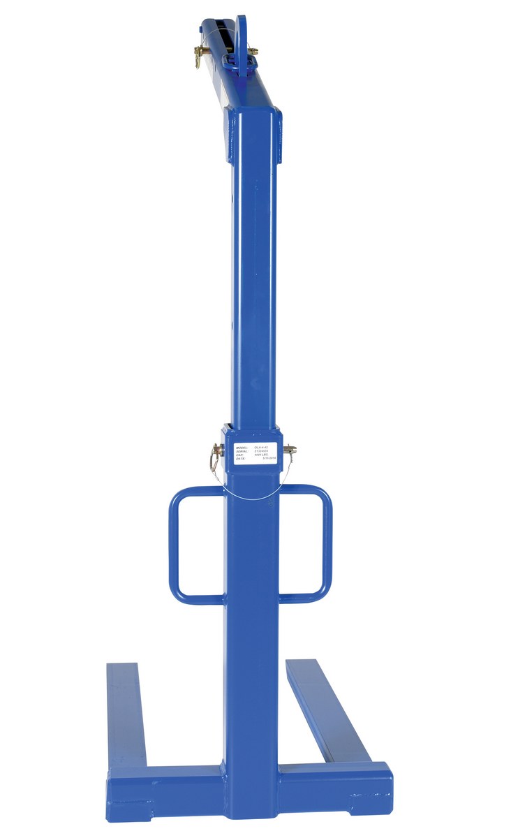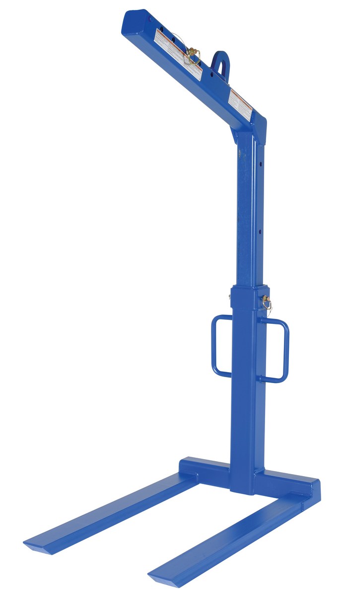 Steel Overhead Load Lifter Fixed 43-1/8 In. Fork 4000 Lb. Capacity BlueThe overhead load lifter is designed for lifting and moving pallets, skids and crates with an overhead lifting crane. Includes an adjustable bail for keeping the load level when moving. Includes three (3) height positions for use with different sized loads.