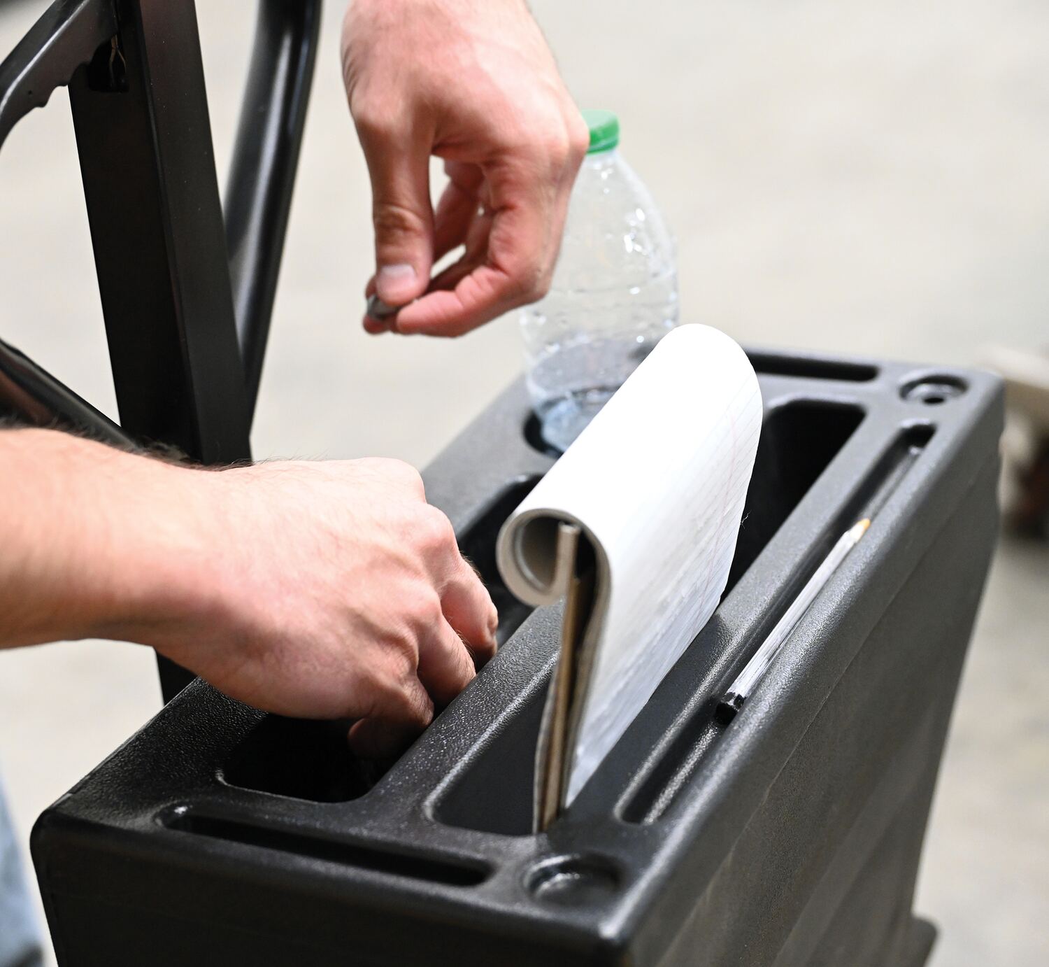 The pallet truck caddy is an economical product that will convert a standard pallet truck into a portable workstation in minutes. It has been designed with user efficiency and convenience in mind. It easily attaches to virtually any type of pallet truck with hardware included. Features beverage holder, tool pockets, pen and pencil tray, and clipboard holder.