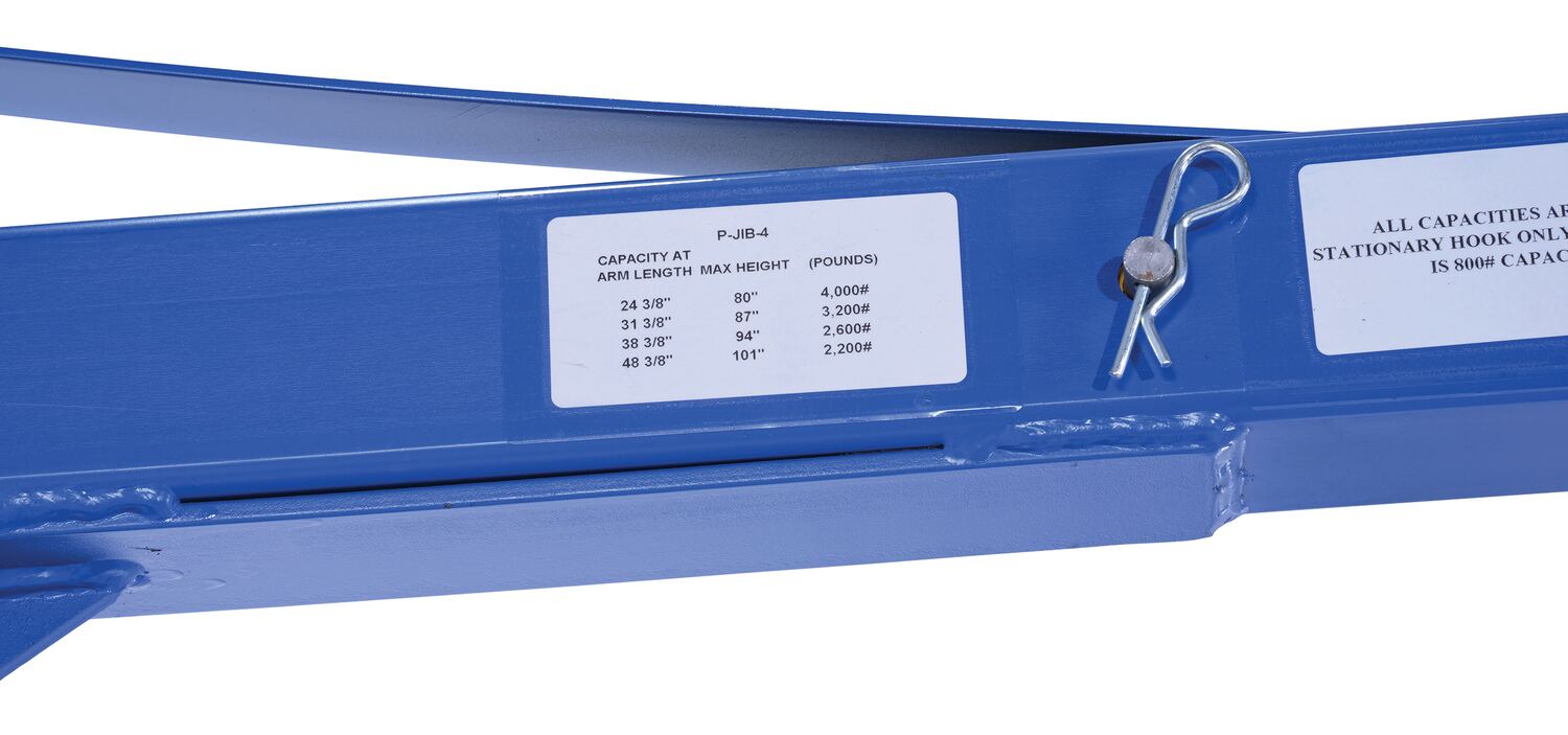 | Capacity at Hook Point 24-3/8" (lb.): 4,000 | Capacity at Hook Point 31-3/8" (lb.): 3,200 | Capacity at Hook Point 38-3/8" (lb.): 2,600 |