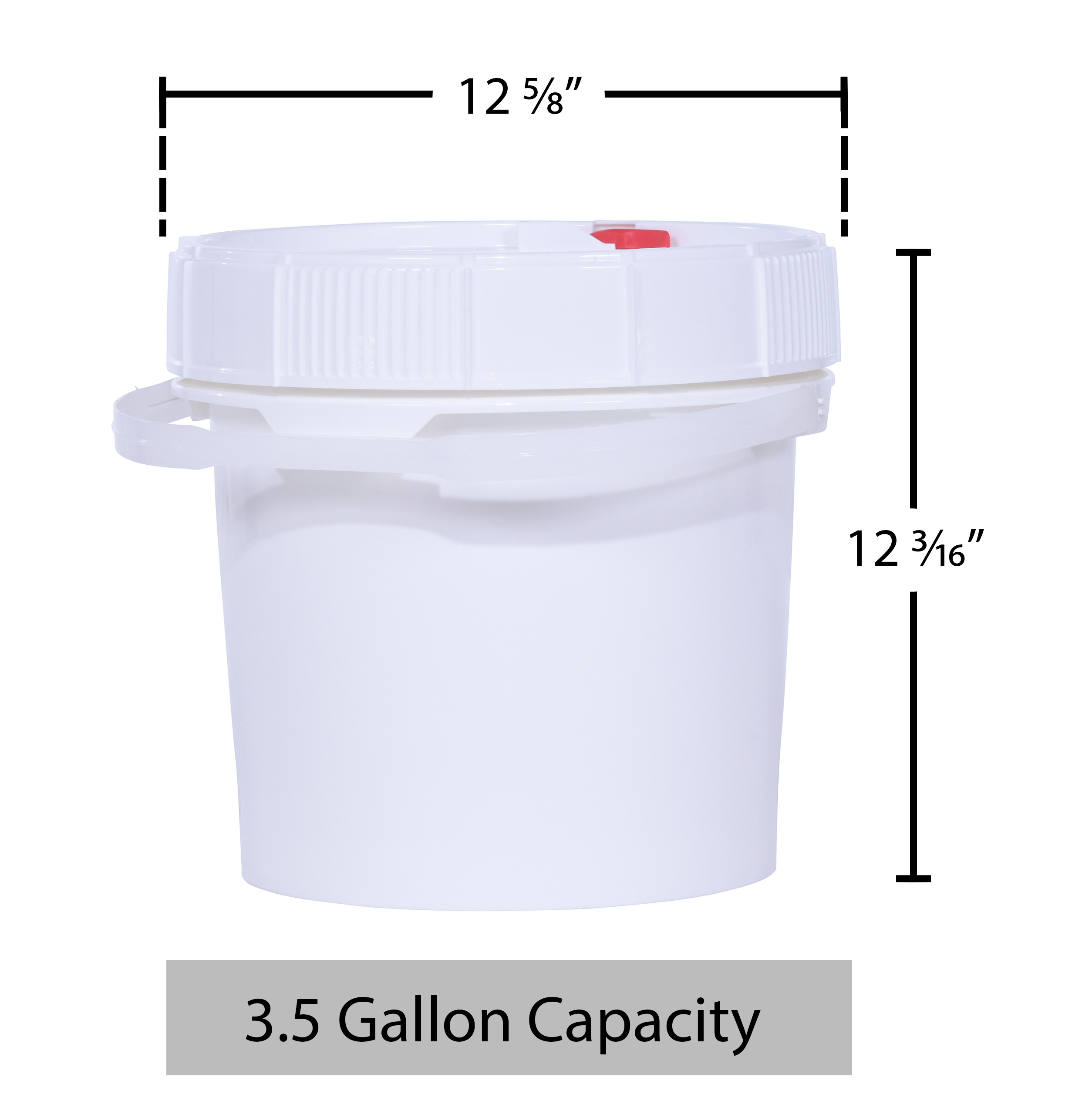 High Density Polyethylene Screw Top Pail and Lid 12-5/8 In. x 12-5/8 In. x 12-3/16 In. 3-1/2 Gallon WhiteThe open head pail is ideal for the construction and shipping areas. Strong enough for use in shipping applications and durable enough for the most demanding storage applications. This unit can be used with hot liquids as well as freezer applications.