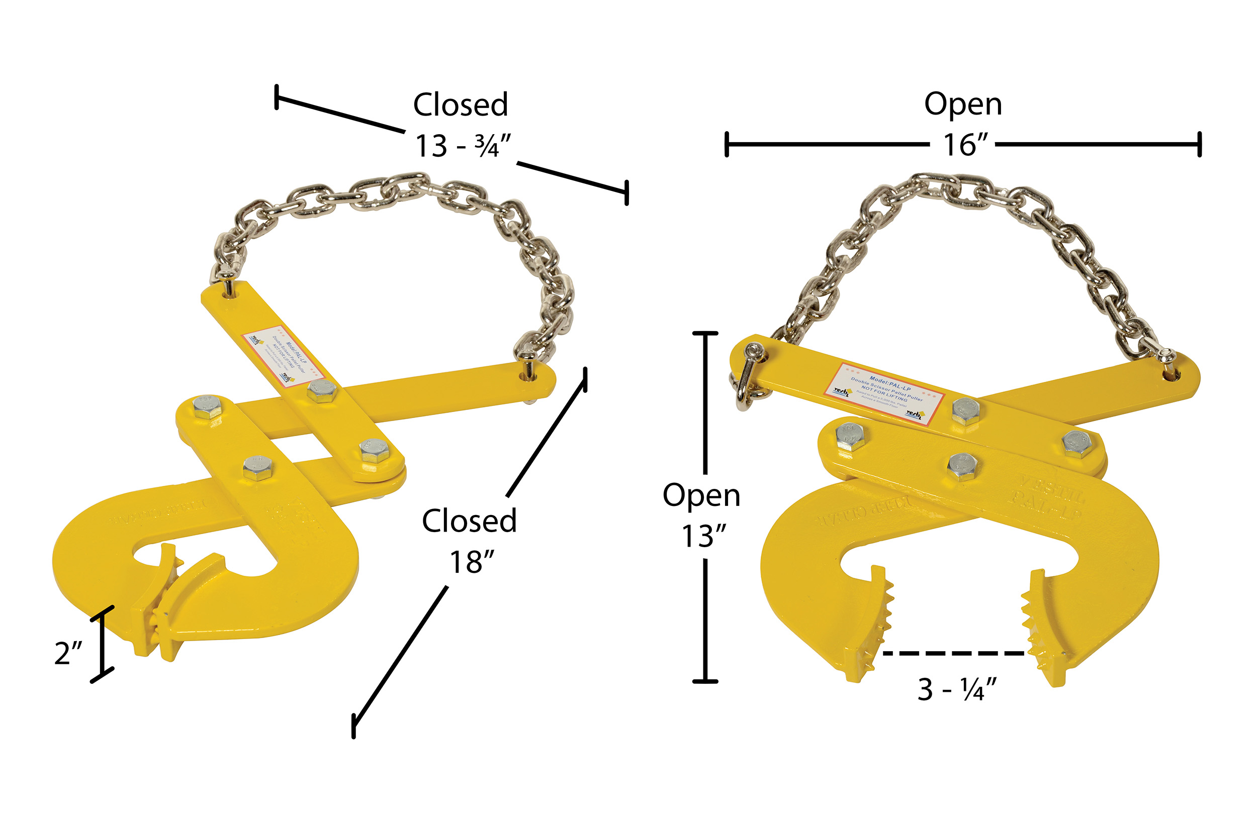 Steel Low Profile Double Scissor Pallet Puller 2 In. x 16-3/4 In. x 13-3/4 In. 5000 Lb. Capacity Yellow