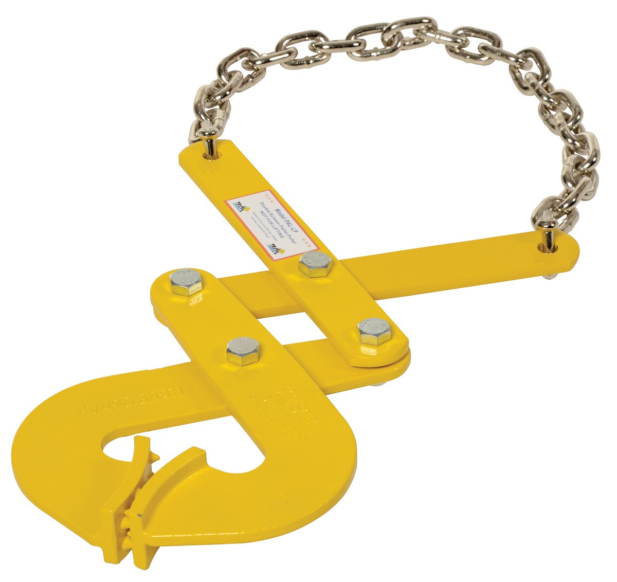 The pallet puller is used to pull pallets to rear of trailers for easy fork truck access. Made of rugged steel construction. Heads are self-cleaning and unaffected by wood particles, paint or grease. The one (1) piece curved heads have integral spurs for gripping pallet stringers. The pallet puller is not designed for lifting.