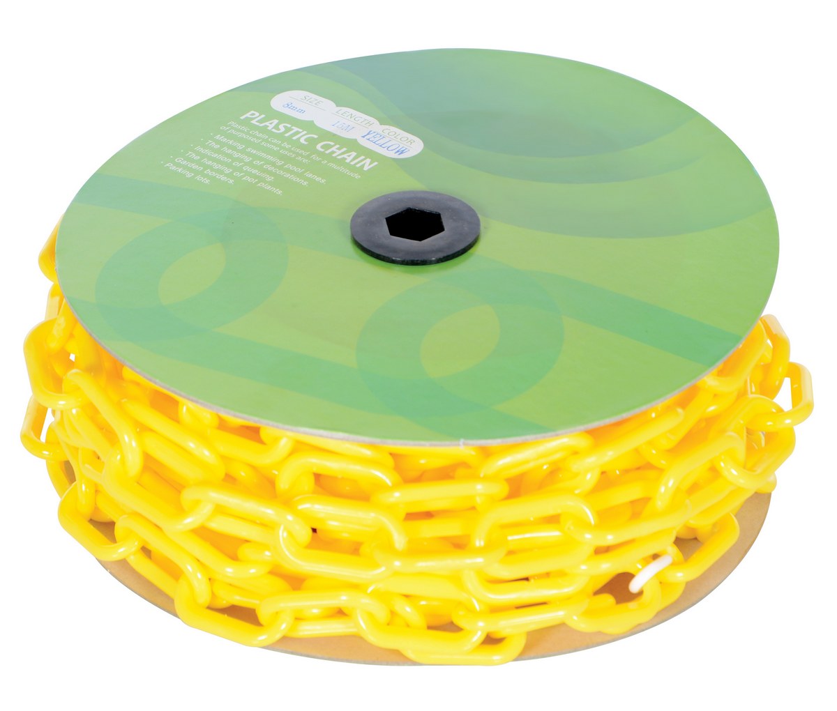 Plastic Chain Barricade 2 In. x 2 In. YellowPortable and lightweight plastic chain barricade is easy to position where needed most. Chain simply snaps onto post hooks. Unit is easy to assemble with snap-together parts.