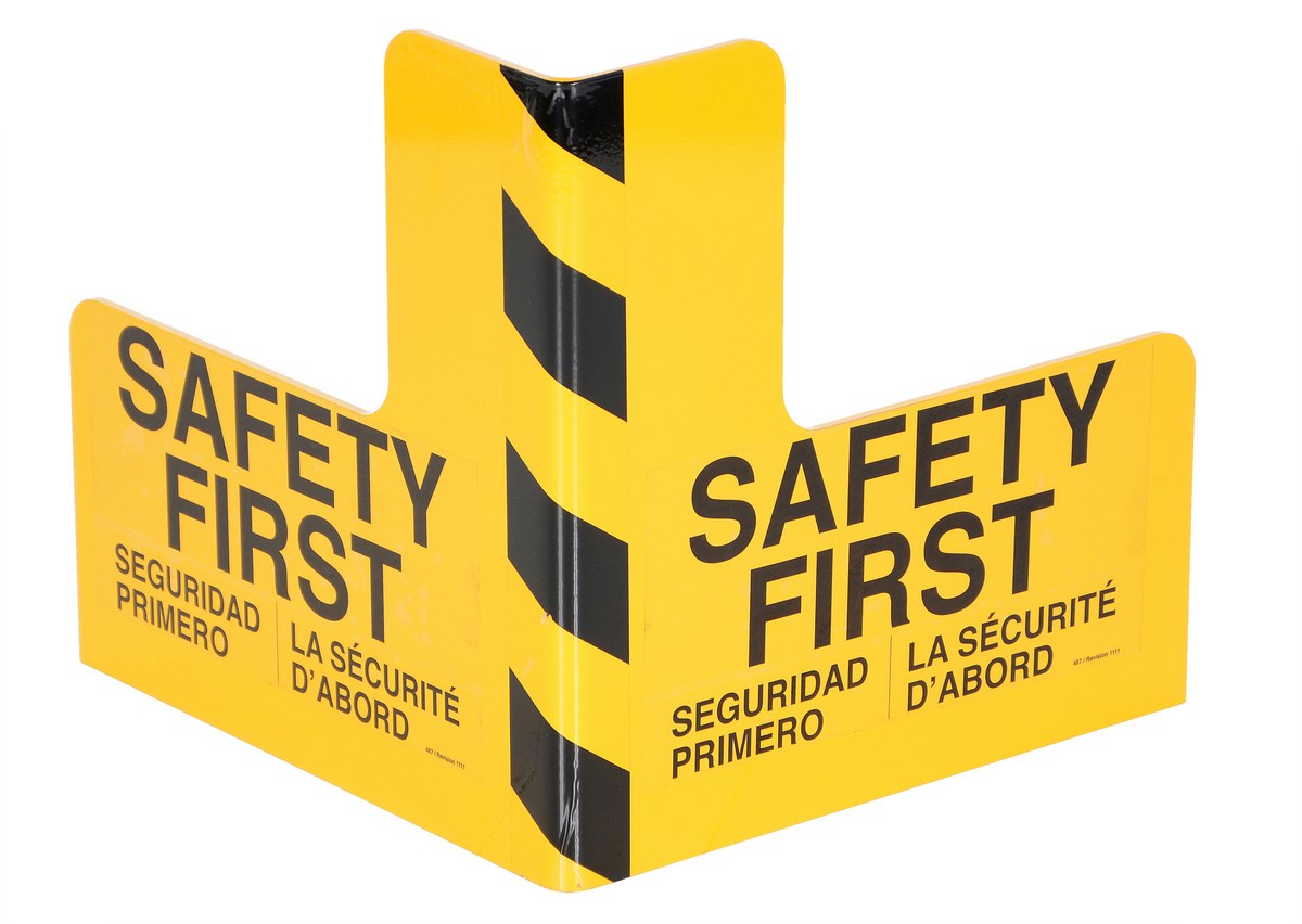 Protect busy corners, expensive machinery and personnel with this corner guard and its perpendicular protection. "Safety first" promotion reminds personnel of the number one priority.