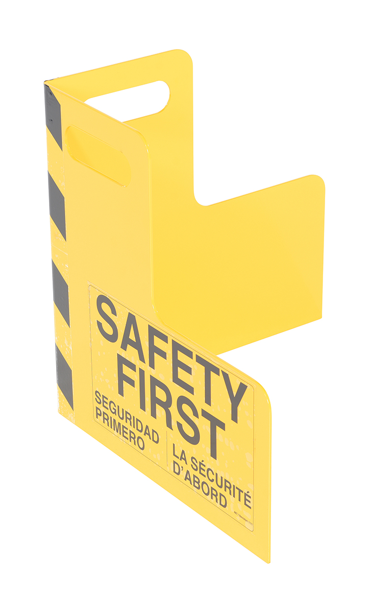 Protect busy corners, expensive machinery and personnel with this corner guard and its perpendicular protection. "Safety first" promotion reminds personnel of the number one priority. A built in handle allows for precise positioning and simple transference from area to area.