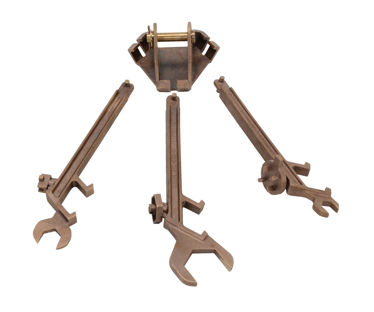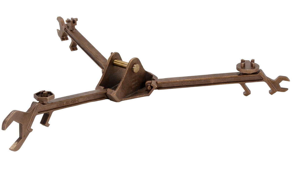 Simple three-arm design for use with closed head 30 and 55 gallon steel, plastic, and fiber drums with a top lip. Each removable arm also functions as a wrench for use on drum plugs, faucets, and rim ring bolts. Mechanical operation. Requires assistance from an overhead lifting device.