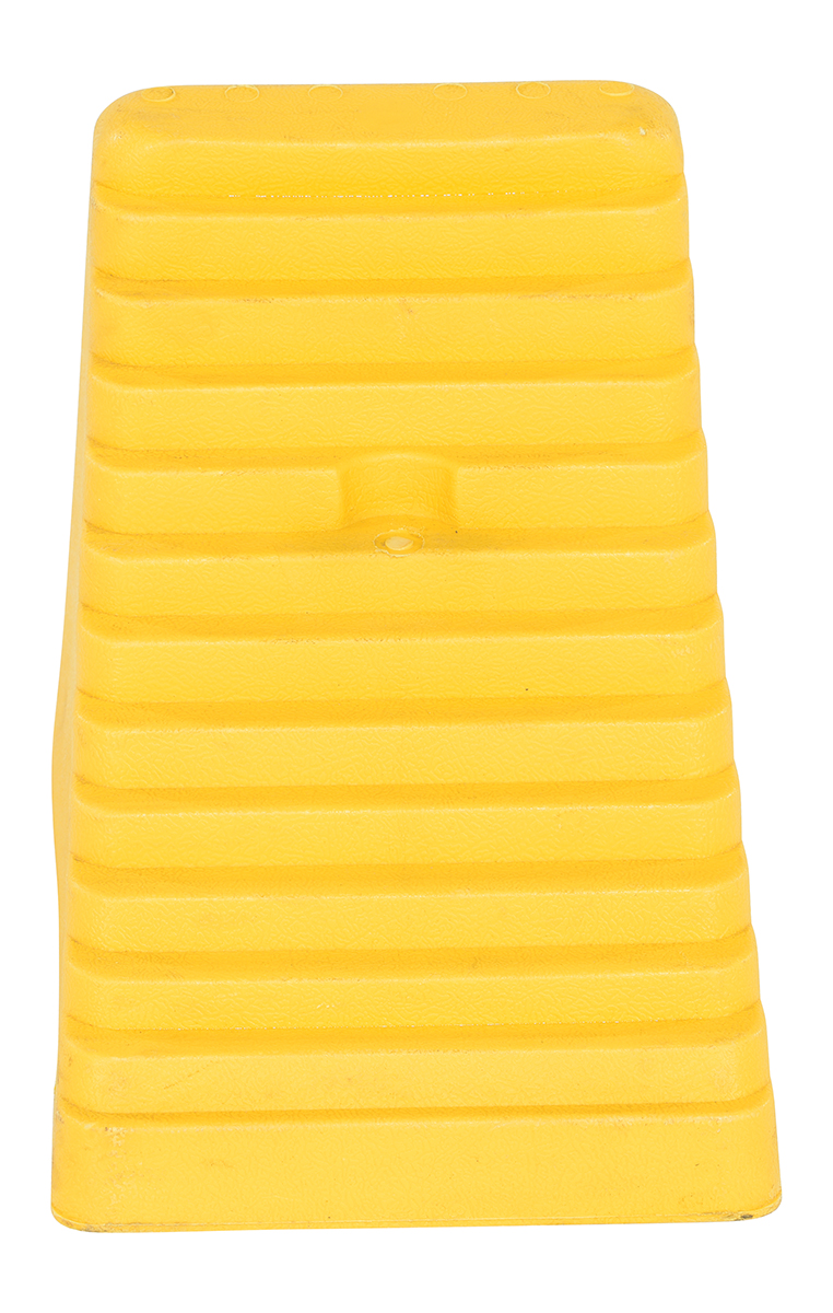 Polyethylene Wheel Chock 5-1/2 In. x 12 In. x 17-1/2 In. 7,000 Lb. Capacity YellowA polyethylene wheel chock helps maintain stability on uncertain surfaces. With a steady foundation, the chocks minimize the chance of movement or jostling. A lightweight design is perfect for carrying and transference from areas to area. With a bright design, the color promotes clear visibility. The chock is compact in size for minimal storage space when not in use.
