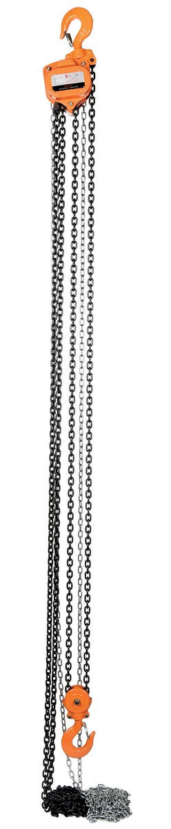 Professional Hand Chain Hoist 20 Ft. Lift Height 6,000 Lb. Capacity OrangeThe professional hand hoist is ideal for manufacturing and industrial settings. The hand hoist is light weight and compact for use in small confined areas. The featured spur gears and pull chain provide smooth load handling. Meets ANSI requirements.