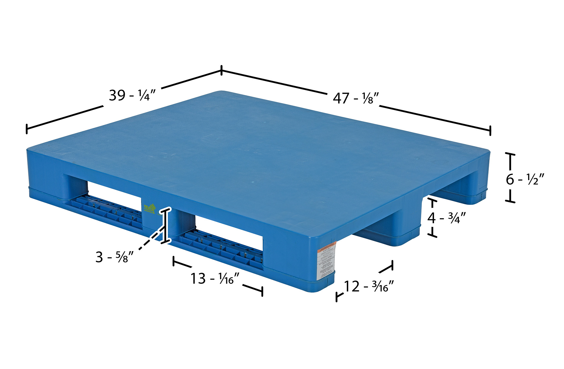 High Density Polyethylene Solid Top Rackable Pallet/Skid 39-1/4 In. x 47-1/8 In. x 6-1/2 In. 8,800 Lb. Floor Capacity Blue