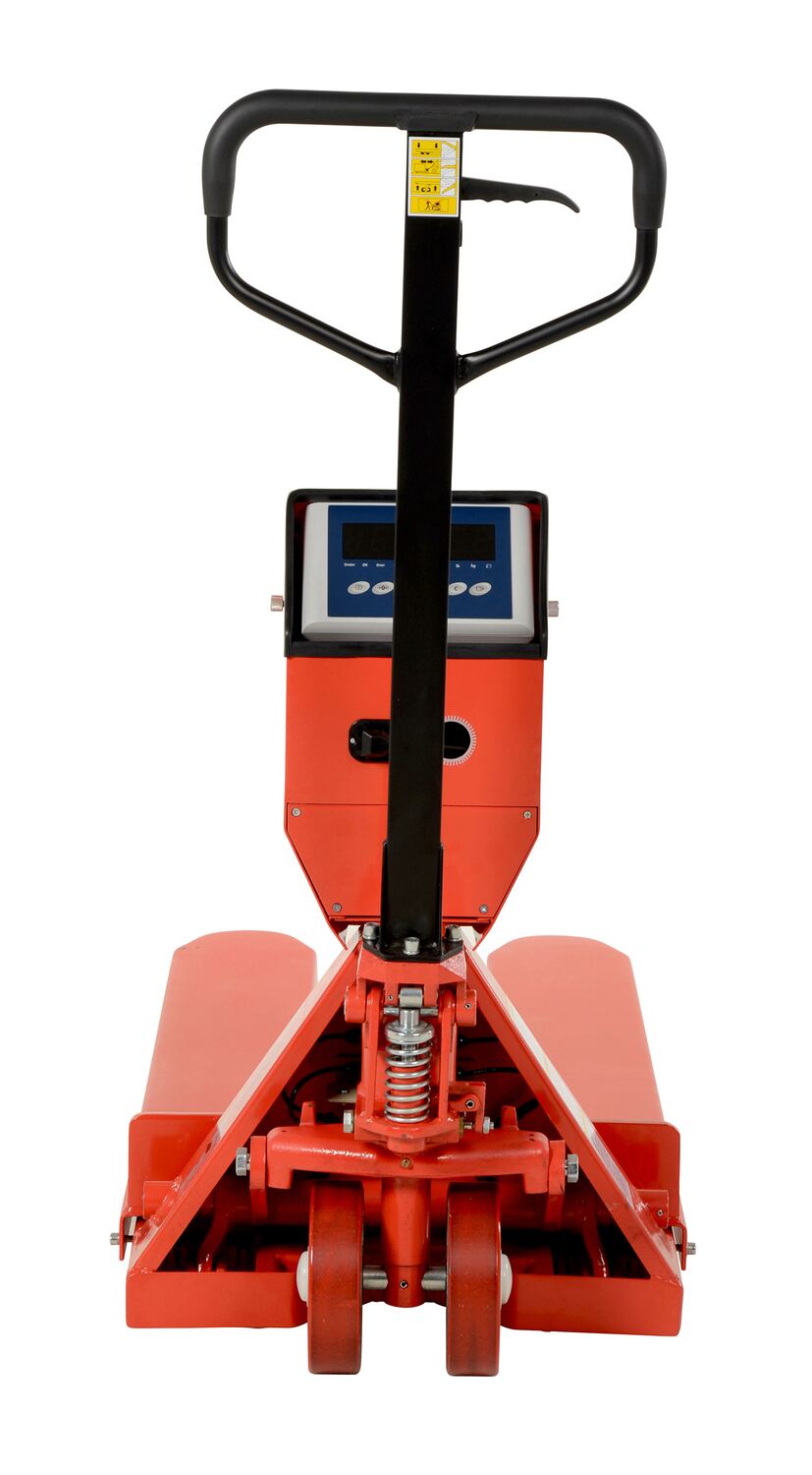 Steel Low Profile Pallet Truck with Scale 64-1/2 In. x 22-3/8 In. x 48 In. 5000 Lb. Capacity RedThe pallet truck with digital scale allows you to weigh your load on the spot for maximum efficiency. The frame uses heavy-duty steel construction for maximum strength and durability. The unit is very user friendly and is suitable for low height lifting. The built-in scale allows you to weigh your load while it is being handled. The scale is selectable in a variety of increments to adjust to the size of your load. It has keyboard calibration and functional setup with automatic zero capabilities. Digital filtering is used to help compensate for vibration and motion to make the pallet truck with digital scale smooth and accurate. The scale is powered by batteries with AC adapter included. Step approval is also available.