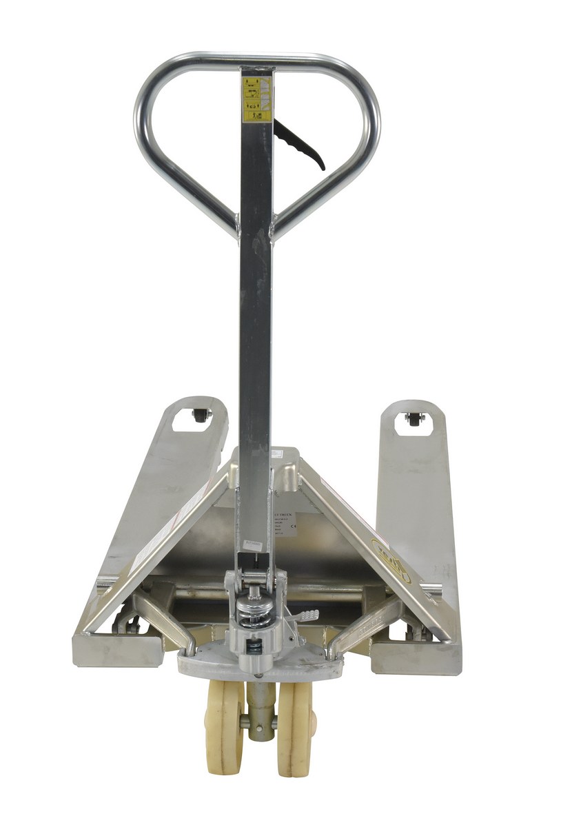The specialized pallet truck is ideal for corrosive environments. The full-featured pallet truck is designed for chemical, pharmaceutical, and wash-down applications.