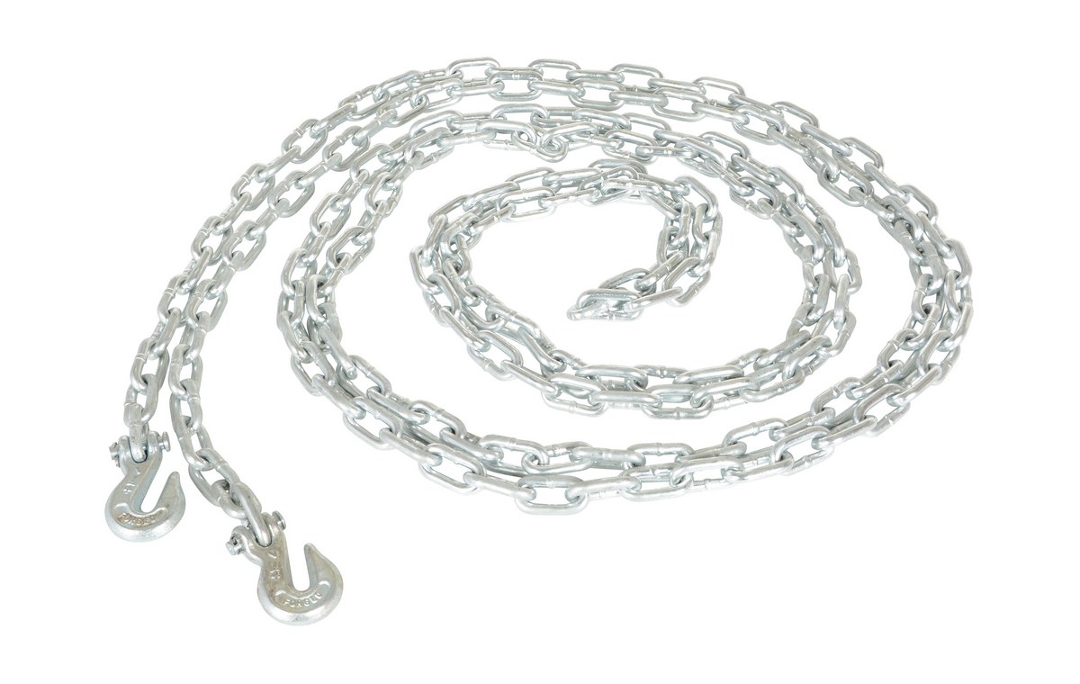Steel Chain with Grab Hook 20 Ft. Length 1/4 In. Chain 6,000 Lb. Pulling Capacity SilverChain with grab hooks on each end of the chain, attached to the chain with a cotter pin, for the pallet pullers.