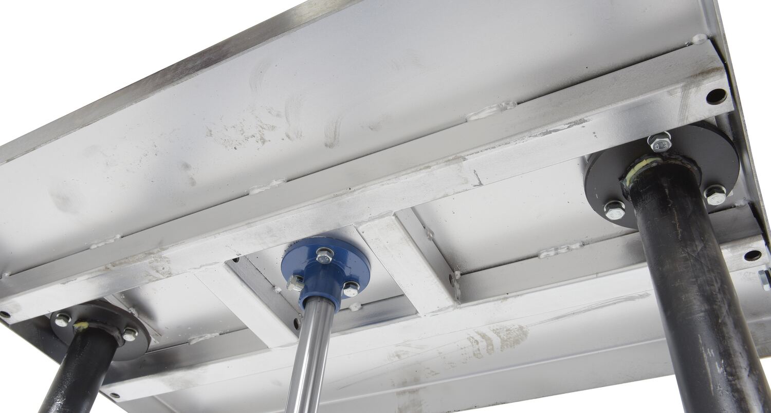 Hydraulic post tables are ideal in material handling facilities. The unit can be of use in a variety of environments from lifting dies and castings to moving machine parts. The corner posts are telescoping to help stabilize and fully support the load during operation. The tables roll smoothly on two (2) locking swivel casters with brakes and two (2) rigid. The tables can be lifted/lowered with a single speed foot pump, two-speed foot pump, two speed auto shifter that automatically shifts when the table is loaded, or linear actuated power.