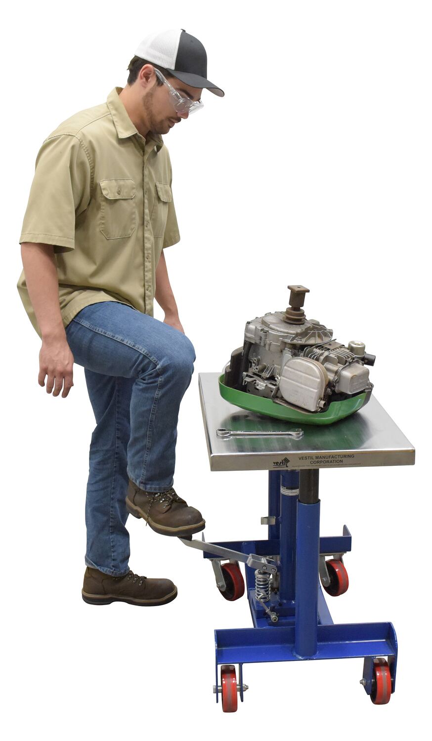 • Features a low profile hydraulic foot pump
