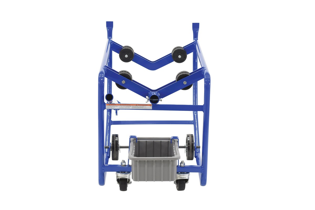 Designed to rotate a 55 gallon steel drum from the vertical position to the horizontal position so their contents may be emptied. Equipped with rollers for mixing. Includes a built in drip pan to provide a clean, safe work floor. Rolls on two (2) 3" swivel casters and two (2) 5" rigid casters. Simple one-person operation. Steel construction. Durable powder coat finish.