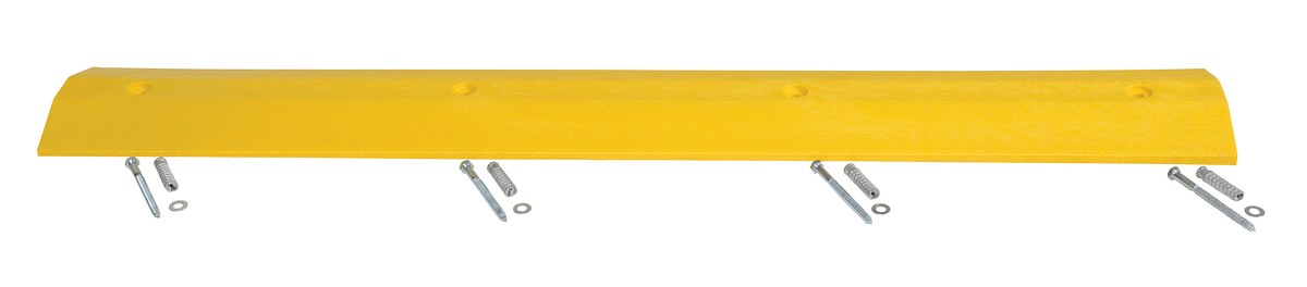 The speed bump is ideal for a variety of parking areas, both inside and out. The speed bump helps to control drivers from injuring people and property. The unit can be installed/removed by one person resulting in smooth portability. The strong recycled plastic construction can be used where traffic is frequent and can hold up to the constant day to day harm from chemicals and sunlight. Features a dual cable channel. The concrete hardware kit includes bolts, anchors, and washers.