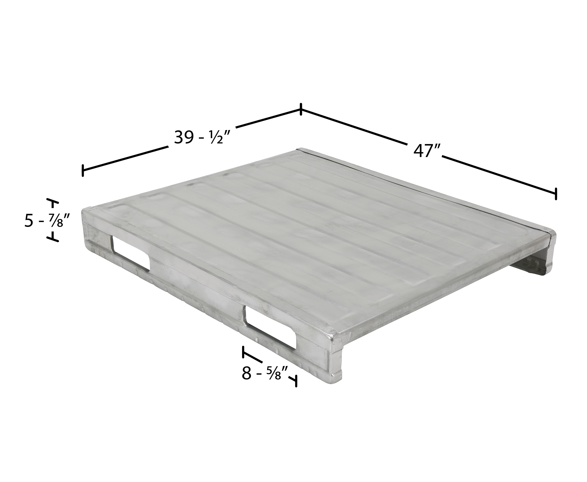 Fork Pocket Width (in.): 8-5/8 Fork Pocket Height (in.): 2-5/8 Open End Usable Width (in.): 35
