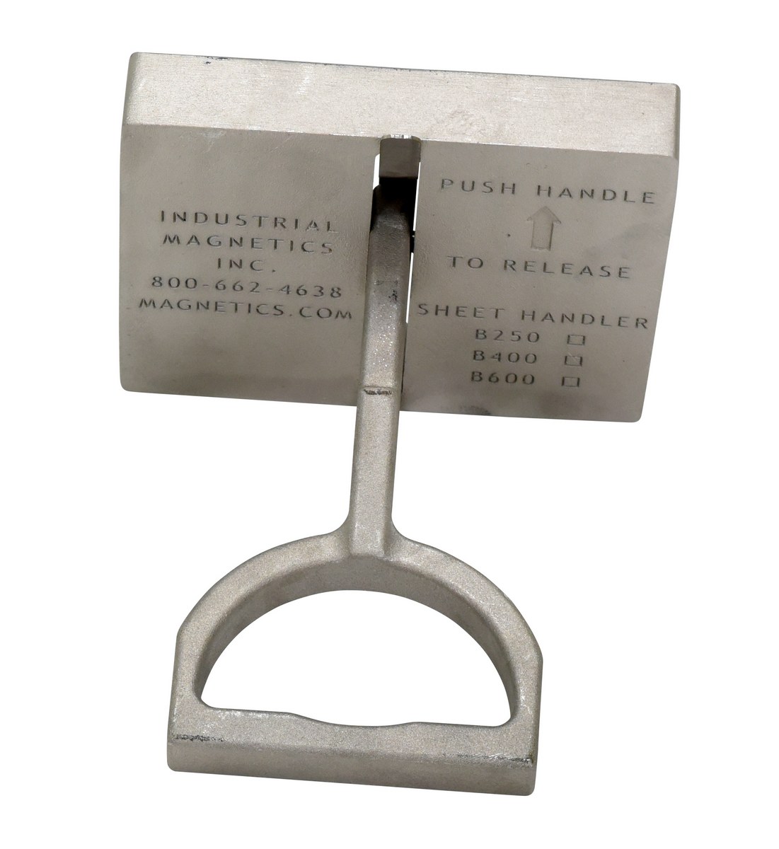 The sheet handlers are a great addition to manufacturing and industrial facilities. The strong construction with attached magnets allows the user to maneuver specific products into position for simpler, safer handling. The easily accessible handle provides the user with a sure grip and a fast efficient way of releasing the products from the strength of the magnets. The units offer increased productivity for handling sheets stacked horizontally or vertically, that are hot or oily. For best use, simply place the sheet handler on the material and pull the handle back to magnetize, when finished transferring push the handle forward to demagnetize.