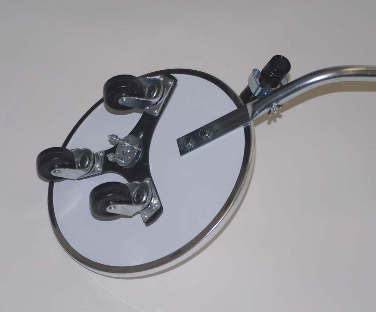 12" Convex inspection mirror w/ three wheel mounting & light for under vehicle inspection.