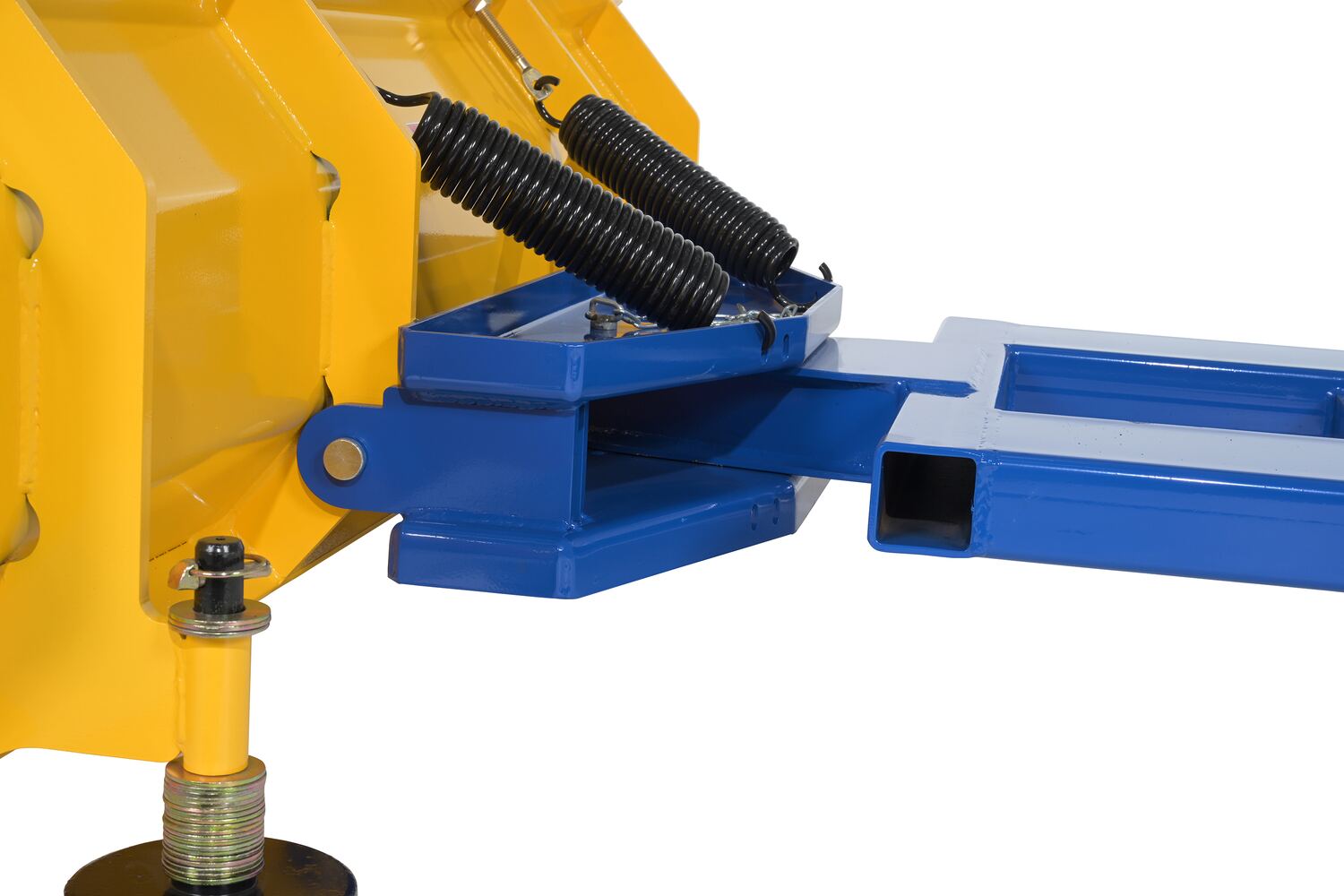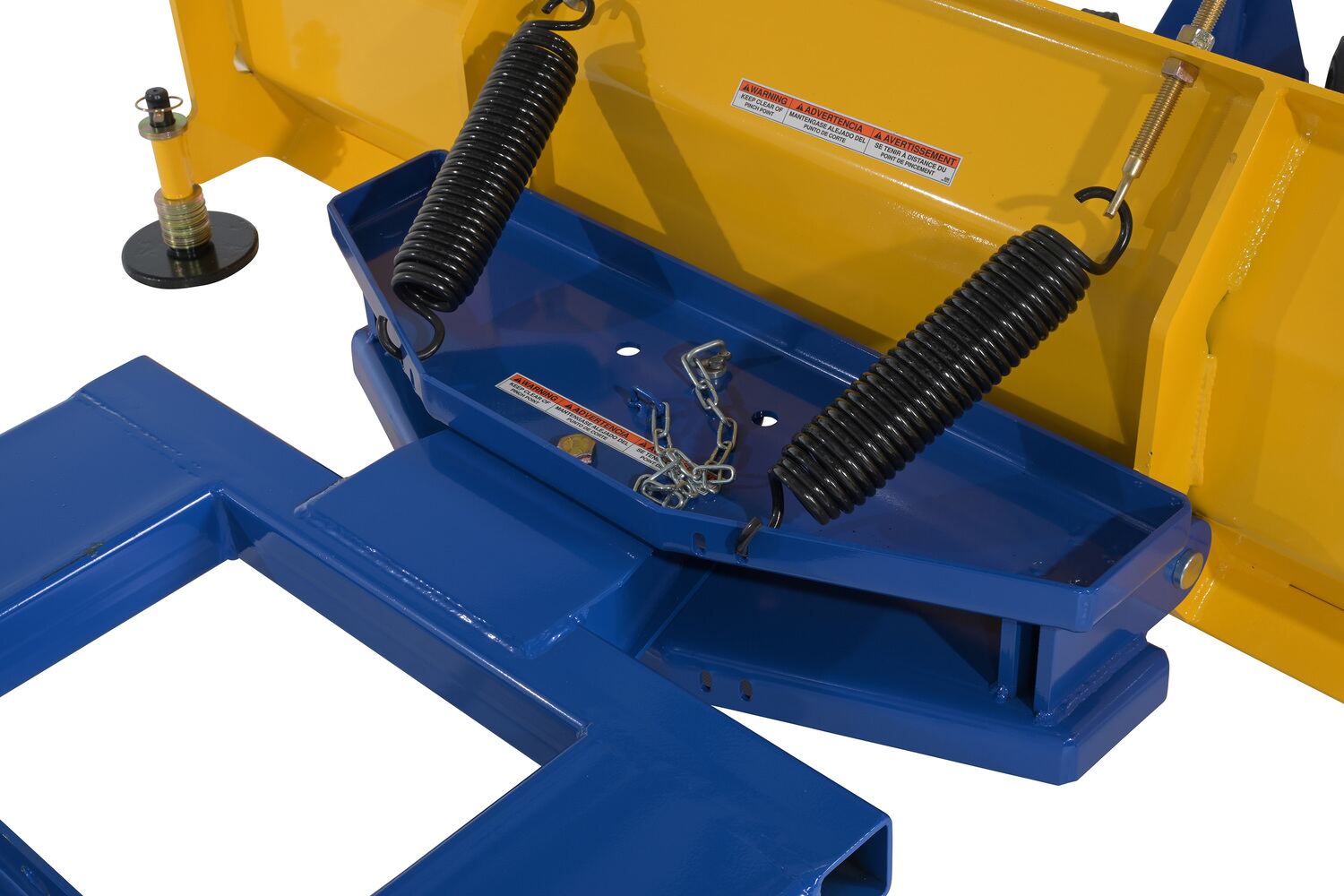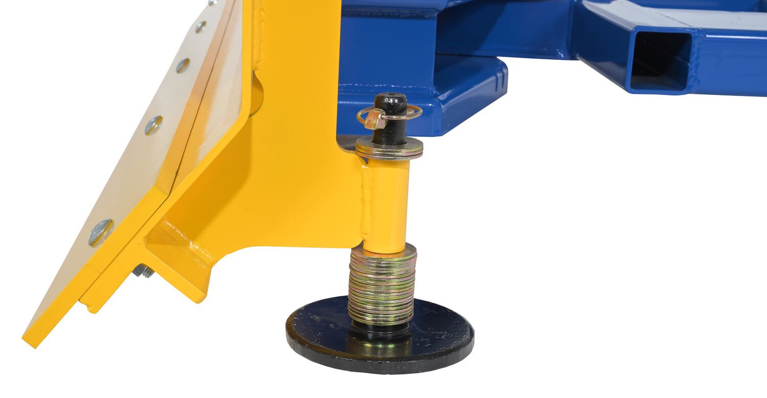 Steel Fork Mount Snow Plow 72" Blade Blue/YellowWhen snow needs moved and removed, look no further than the fork truck snow plow. The unique design attaches to fork truck forks, so no power supply is needed! The design of the plow keeps the weight to the back of the unit, towards fork truck mast. Manual pivot mechanism for angled plowing on both sides. Steel construction with baked in powder coat finish for added toughness.