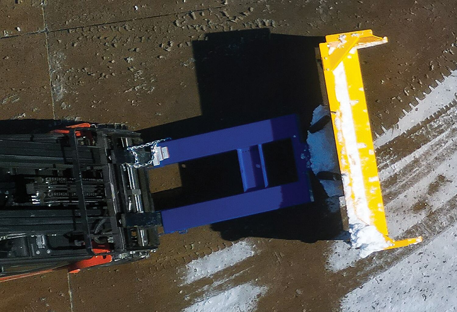 When snow needs moved and removed, look no further than the fork truck snow pusher. The unique design attaches to fork truck forks, so no power supply is needed! With a manual pivot mechanism, blade rotation to both the right and left are simple. Steel construction with baked in powder coat finish for added toughness.
