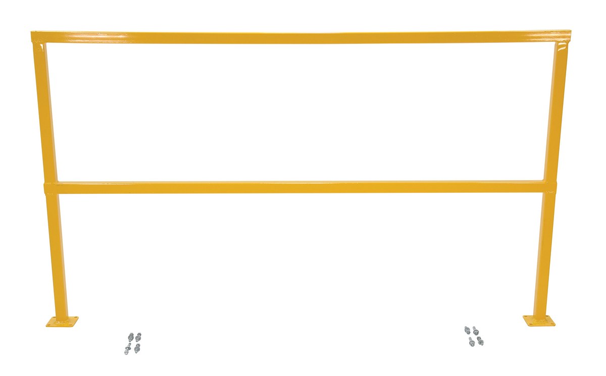 Steel square safety Handrail provides an economical way to protect people and machinery. Applications include loading docks, floor openings, walkways, and mezzanines. Highly visible safety yellow powder coat finish, hardware included.