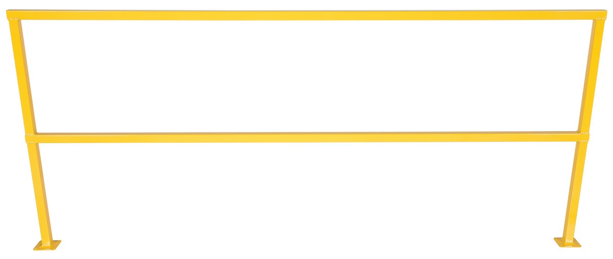 Steel square safety Handrail provides an economical way to protect people and machinery. Applications include loading docks, floor openings, walkways, and mezzanines. Highly visible safety yellow powder coat finish, hardware included.