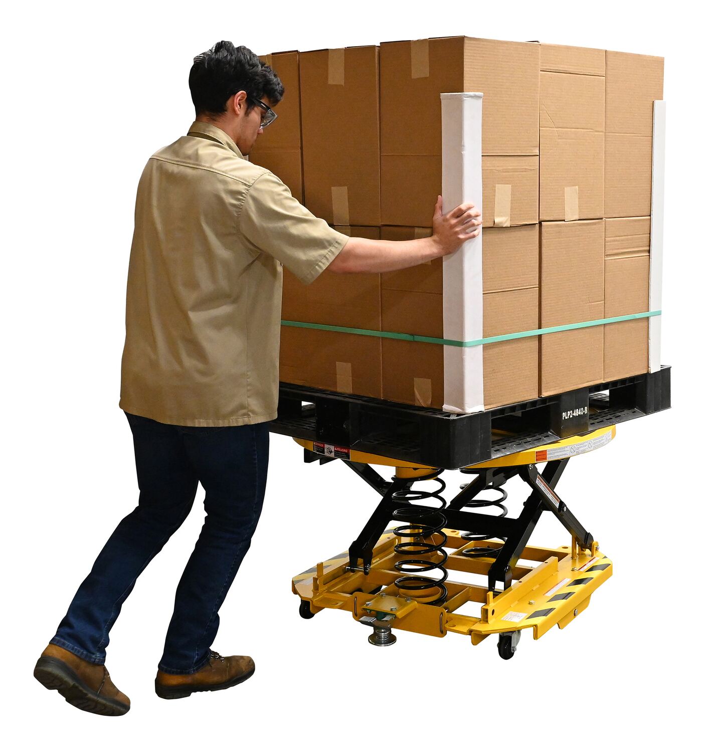 Turning a stationary spring loaded table into a portable one has never been easier. With the caster kit option, the table can now be wheeled around the workplace without the needed of additional lifting equipment. The casters are attached to individual steel pieces which are then secured to the fork pockets of the existing spring loaded table. A floor brake is also included to maintain stability during loading and unloading.