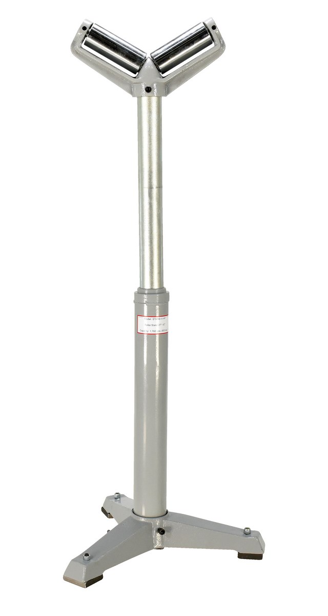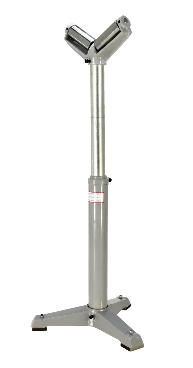 Steel V Roller Stand 33 In. to 43 In. Raised Height 1,760 Lb. Capacity GrayThe deluxe roller stand is designed for use as an extra hand when working with long materials. Each stand includes chrome plated rollers and heavy-duty cast-steel base. This deluxe roller stand is a v-groove roller design. The height of each stand is adjusted with a friction lock screw or a gas charged cylinder. The unit is great for use in machine and wood shops and also includes a counter balance mechanism. Models utilize a gas charged cylinder for maximum efficiency and precise positioning. The gas cylinder minimizes adjustment time and limits manual interaction with the unit.