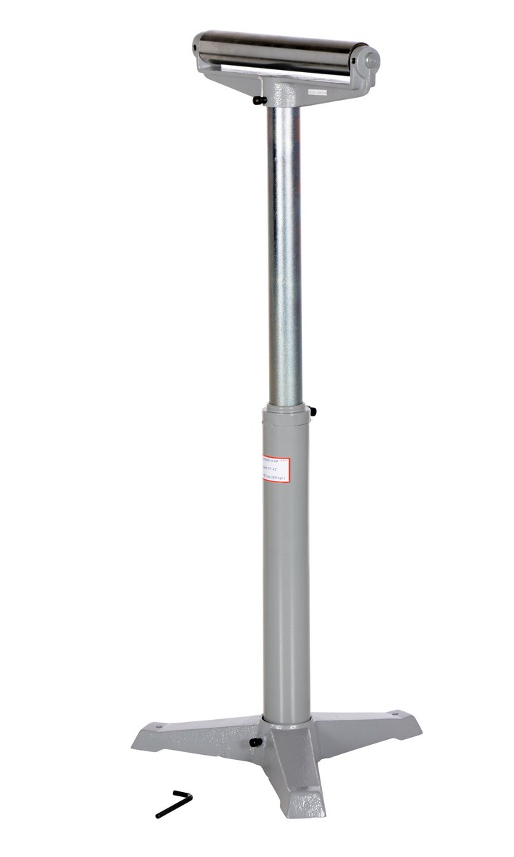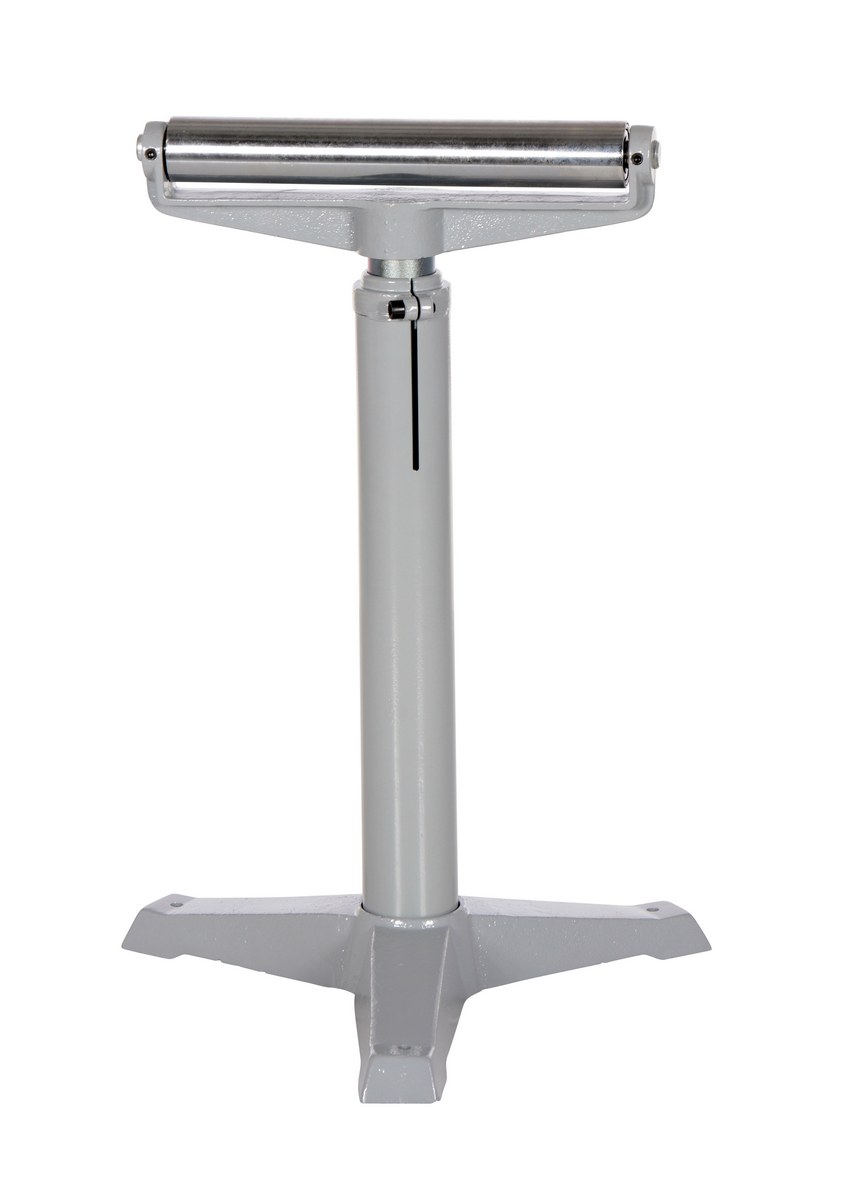 The deluxe roller stand is designed for use as an extra hand when working with long materials. Each stand includes chrome plated rollers and heavy-duty cast-steel base. This roller stand is a flat single roller design. The height of each stand is adjusted with a friction lock screw or a gas charged cylinder. The unit is great for use in machine and wood shops.
