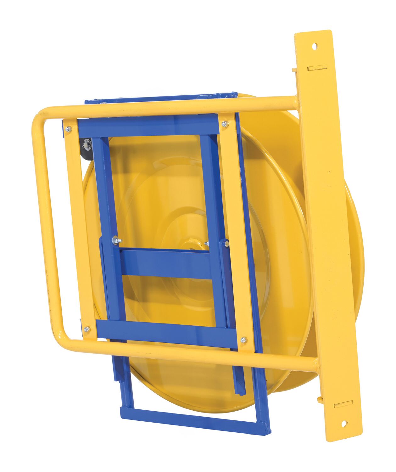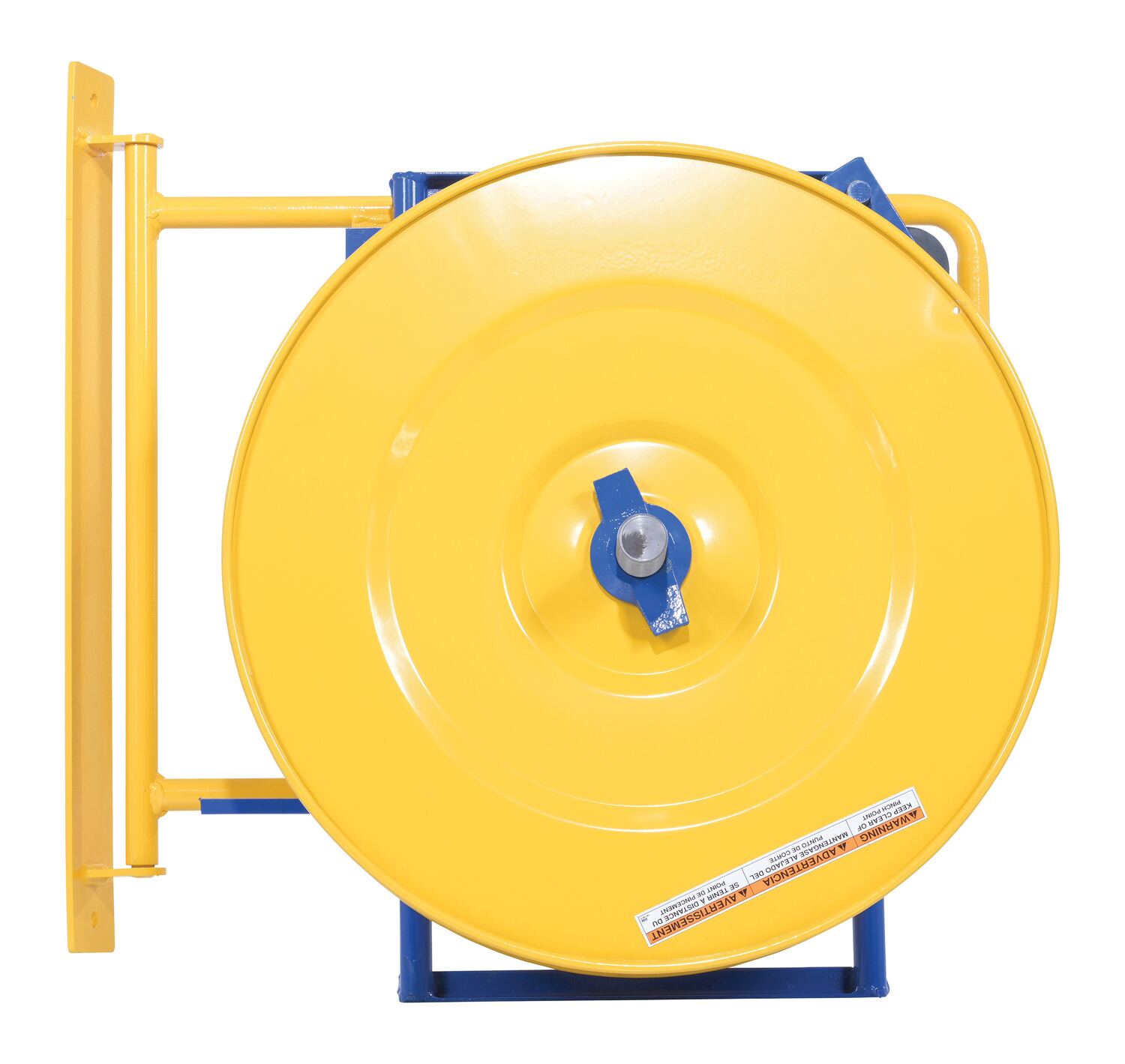 This unique wall-mounted strapping dispenser is for use with steel and poly strapping. The mounting bracket pivots to allow for use in any direction. The unit also pivots up to allow for easier loading of new strapping coils.