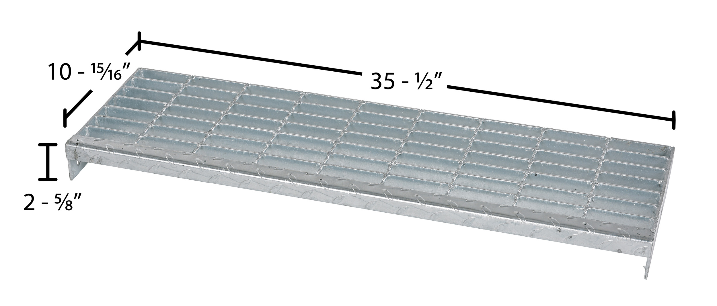 Galvanized Steel Step 3 Ft. Wide 880 Lb. Capacity SilverA galvanized steel step provides both stability and strength in a variety of areas around the workplace. The steel construction is robust and strong to handle consistent daily use, while the large capacity lets the user to traverse the unit with loads both heavy and light. The surface design is grated in an effort to minimize slippage. Unit has pre drilled mounting holes for simple installation and immediate use.