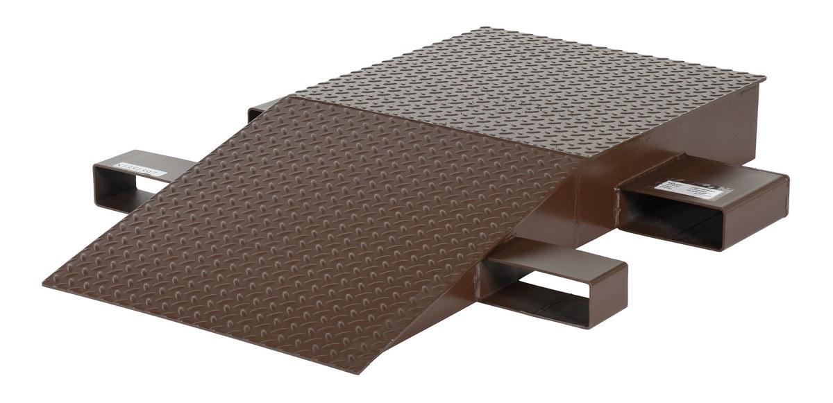 Steel Wheel Riser 48 In. x 24 In. x 6-1/4 In. 40,000 Lb. Capacity BrownWheel risers are designed to raise trailers to an appropriate crossover height for loaded fork trucks. Made of heavy-duty welded steel construction, these wheel risers are built to last! Each riser is equipped with fork pockets for easy transportation wherever a fork truck is available. Ramps may be stacked for convenient storage when not in use. Wheel risers are sold and priced as individual units.