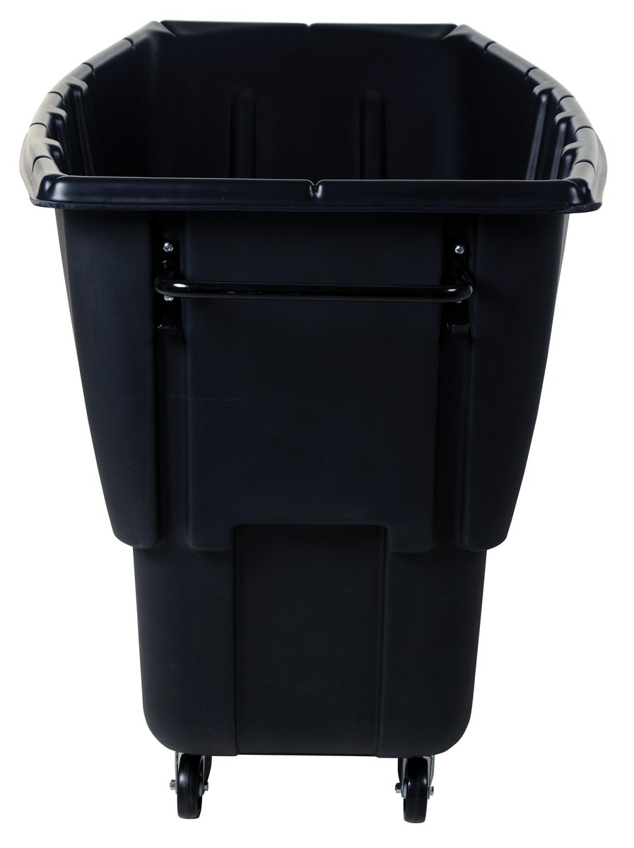 Durable plastic construction allows for collecting waste from multiple bins at a collective time. Great for warehouses, fairs, ball parks, schools, etc. Strong, one-piece molded polyethylene body with steel base tip support and a balanced design to allow for simple dumping by one person. Easily portable on 2 large rubber wheels and two swivel wheels. Not for use with fork trucks. Black color design.
