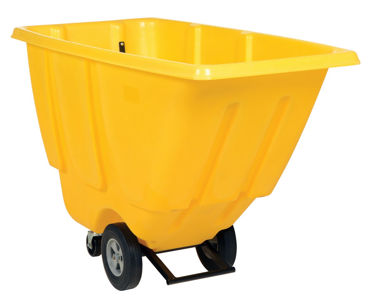 Plastic Light Duty Tilt Truck 1/2 Cubic Yard 450 Lb. Capacity YellowDurable plastic construction allows for collecting waste from multiple bins at a collective time. Great for warehouses, fairs, ball parks, schools, etc. Strong, one-piece molded polyethylene body with steel base tip support and a balanced design to allow for simple dumping by one person. Easily portable on 2 large rubber wheels and two swivel wheels. Not for use with fork trucks. Yellow color design.